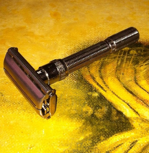 Учитывая, что покупал у 3-х разных продавцов, удивлен тем, что механизм регулировки лезвия работает четко, а открытия/ закрытия крышки - мягко и плавно. Не думаю, что элементы внутри нуждаются в какой-то смазке.Полностью металлическое изделие. Кстати, последняя продукция Gillette, которая изготавливалась полностью из металла. Когда держишь в руке, чувствуется - качественная вещь. Если не удастся продать - одни станок с удовольствием оставлю себе, два других подарю друзьям Более подробная информация и цены с учетом пересылки указаны ниже. 1. M1 1967 г. Пятна на ручке, отсутствует краска на цифрах на ручке регулировке лезвия. Стоимость 32$ или 1000 руб 2. H2 1962 г. Небольшие точки на крышке. Стоимость 35$ или 1100 руб 3. I4 1963 г. Частично отсутствует краска на цифре 9. Стоимость 40$ или 1250 руб Добавлено спустя 1 минуту 21 секунду: Фотографии M1 Добавлено спустя 4 минуты 10 секунд: Фотографии H2 Добавлено спустя 4 минуты: Фотографии I4 Re: Gillette Slim AdjustableСтанок I4 1963 г продан