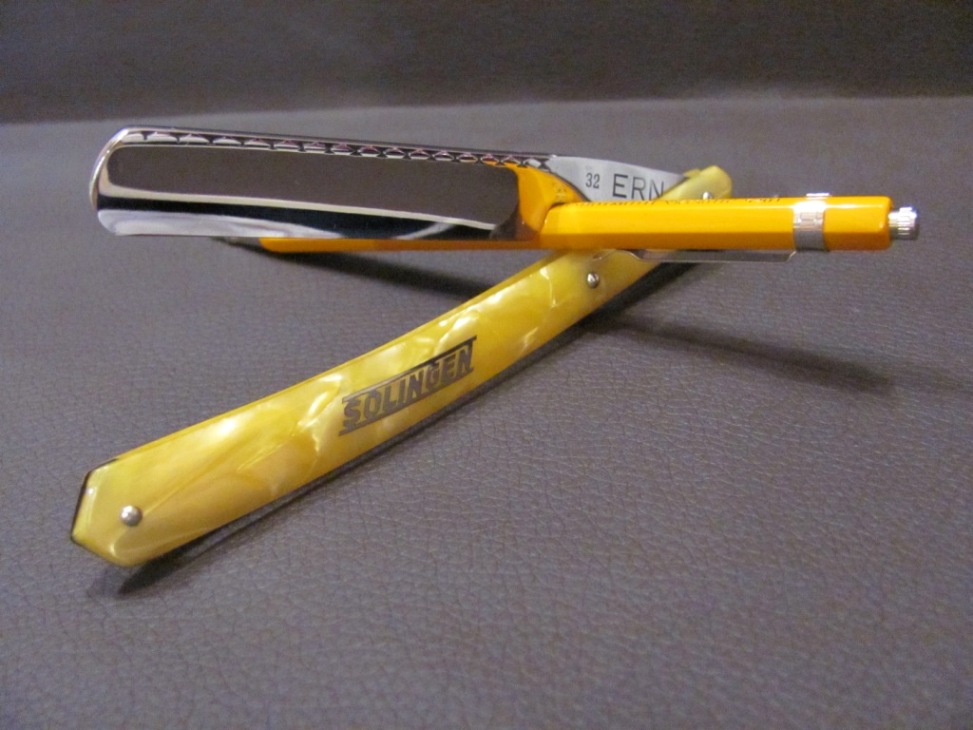 Ручка: пластик эмитирующий перламутр. Параметры: Ширина полотна 14мм, обух 4,5 мм, пины родные. Бритва прошла мою реставрацию и заточку. ПРОДАНА ERN Show