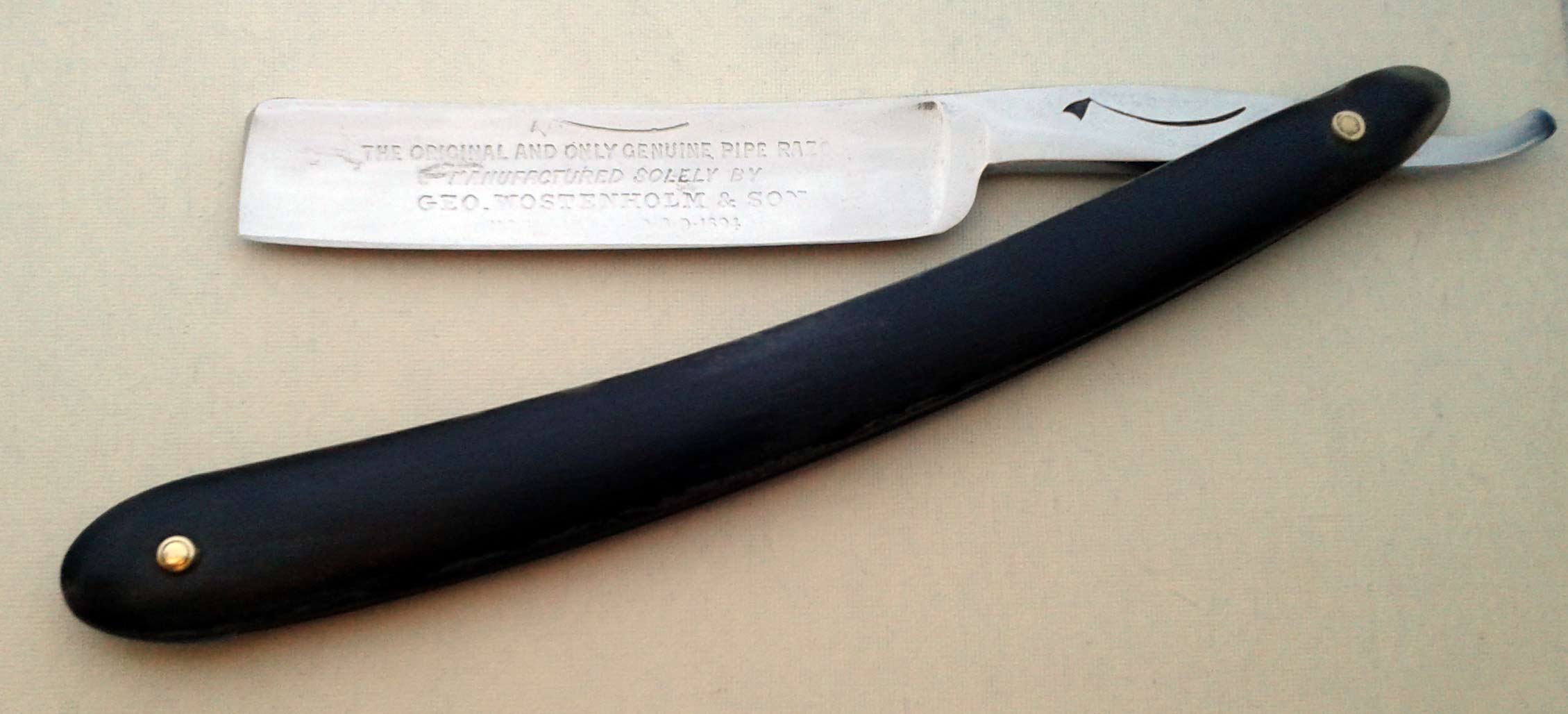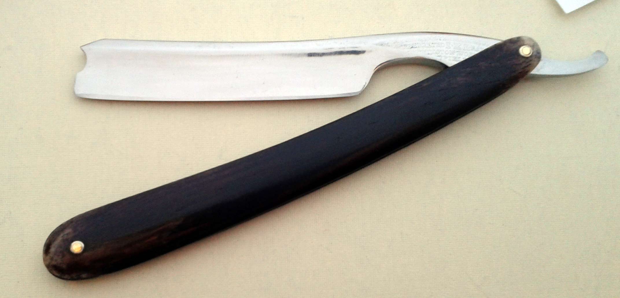 Сведения о производителе: http://britva.ru/forum/viewtopic.php?f=28&t=1663" onclick="window.open(this.href);return false; Ручка - эбонит, в приличном состоянии, клинышек из металла. По-видимому, ручка и пины родные. На полотне присутствуют небольшие "следы времени". Заточена и полностью готова к бритью. Ширина полотна 16,5 мм, толщина в обушке 4,5 мм. Цена 60 евро, доставка включена. Spoiler Show