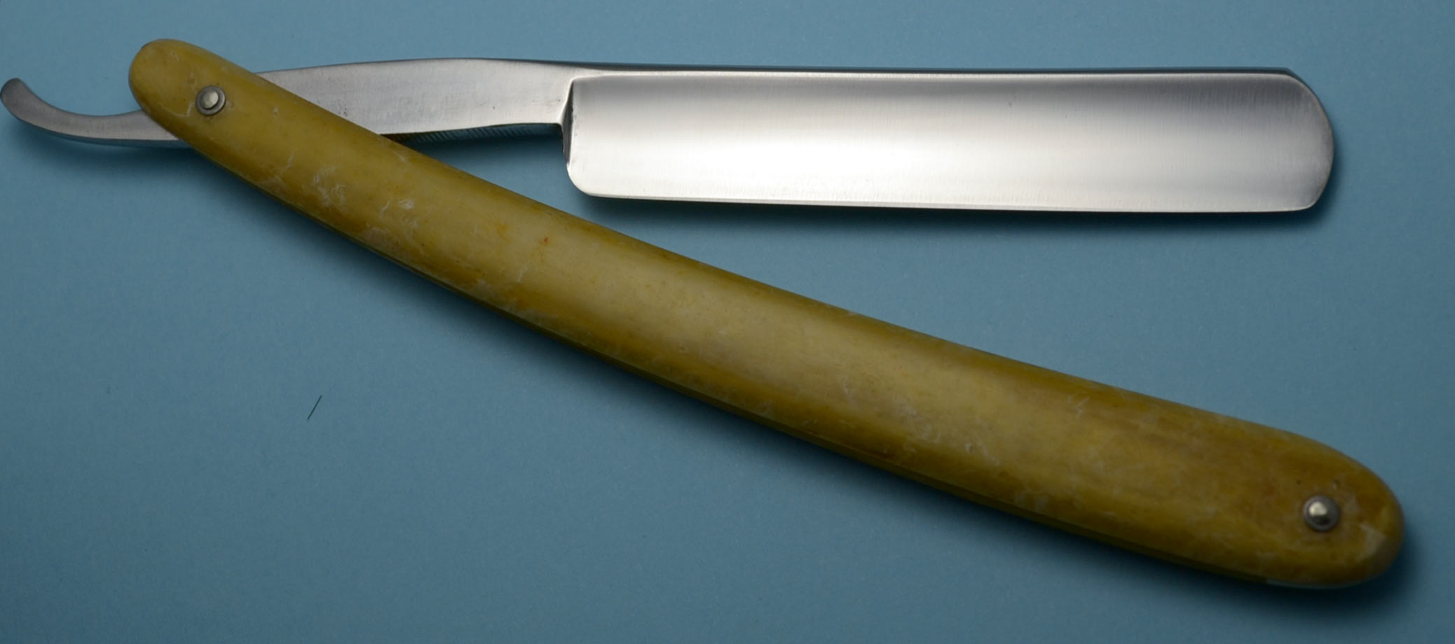 Ручка из рога, клинышек - металл. Ручка возле концевого пина имеет продольную трещину. Заклеена цианакрилатом, на прочность проверена - при нормально использовании проблем не возникнет. По геометрии скорее это все же quarter hollow, а не клин. Заточена и полностью готова к бритью. Ширина полотна 20 мм, толщина в обушке 5 мм. В комплекте штатный футляр "гробиком". ПРОДАНА Spoiler Show Сведения о производителе: http://britva.ru/forum/viewtopic.php?f= ... ilit=klaas" onclick="window.open(this.href);return false; Ручка из эбонита, в отличном состоянии. Заточена и полностью готова к бритью. Ширина полотна 14 мм, толщина в обушке чуть меньше 4 мм.