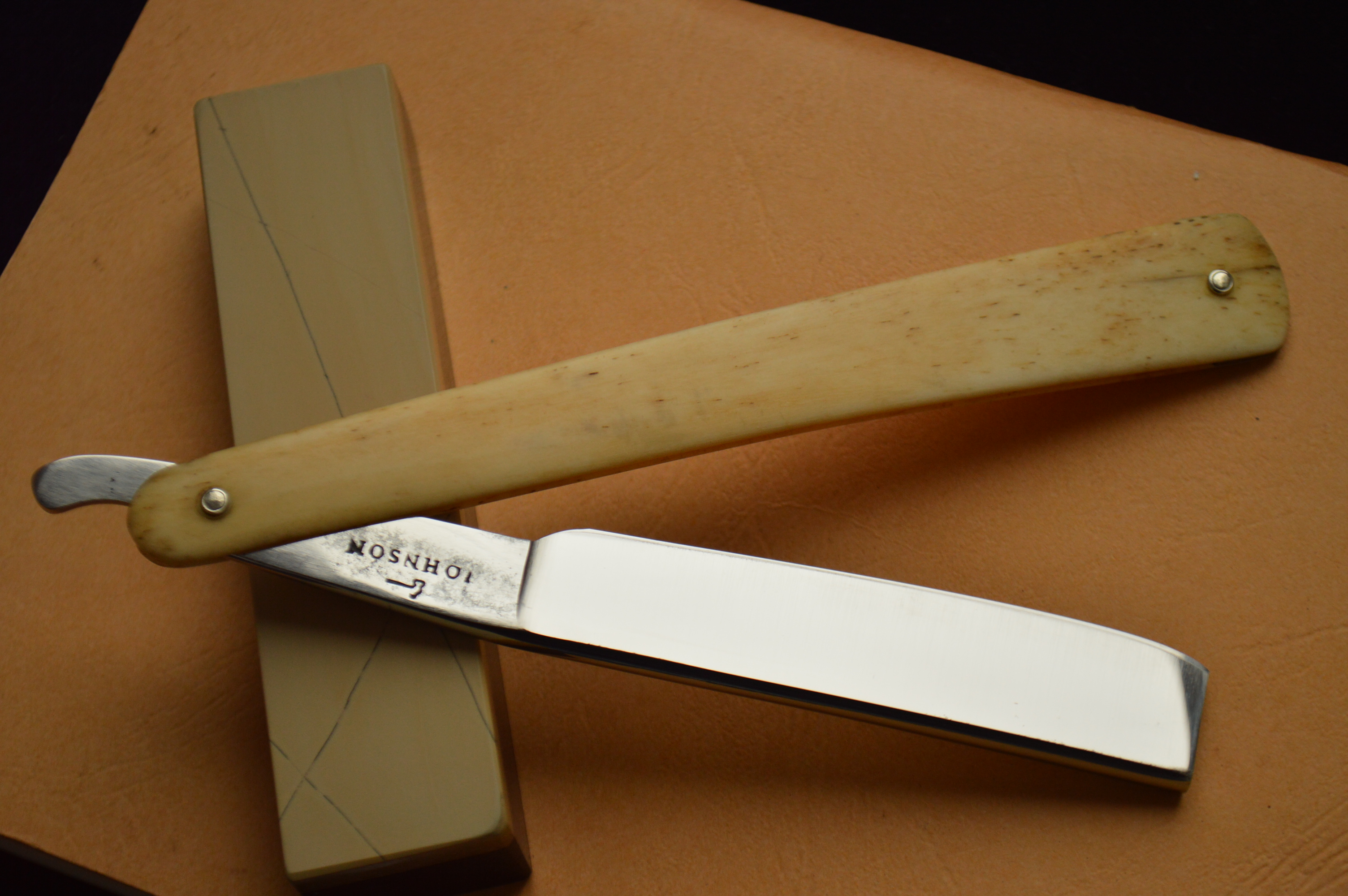Чем еще примечательна бритва так это клеймом молота на эрле. История его такова, что в определенный отрезок истории была обязанность ставить такое клеймо на кованное изделие, после того, как внесли изменения в нормативные акты, обязанность такая пропала, а клеймо закрепилось именно за Джорджем Джонсоном.