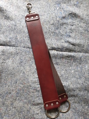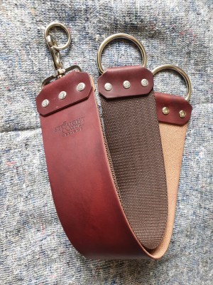 Продаётся от S&T51, Современный американский ремень для правки опасных бритв, производитель - Straight Razor Designs Ллина Абрамса. Ширина 3 дюйма (7,5см), длина 50 см без учета ручек и подвеса. Кожа - латиго, второй строп - плетеная синтетика. Полностью разборная конструкция (НЕ заклепки), качественная фурнитура. Самые минимальные следы аккуратного использования.