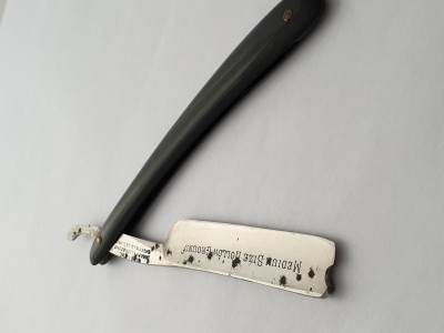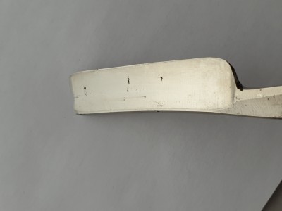 Ручка из рога, без выгрызов, не идеально ровная, но клинок паркуется в нее без перекосов и закусываний. Клинышек - олово. Историю бренда из книги Tweedale's Directory выложил в профильную ветку: viewtopic.php?f=28&t=2792&p=208735#p208735 Цена ПРОДАНО Spoiler Show