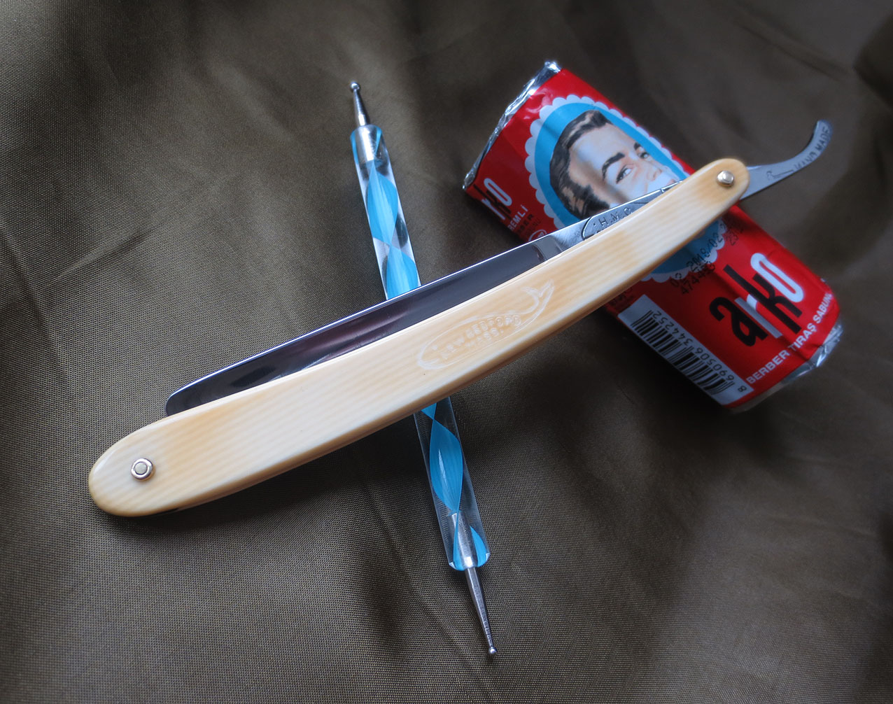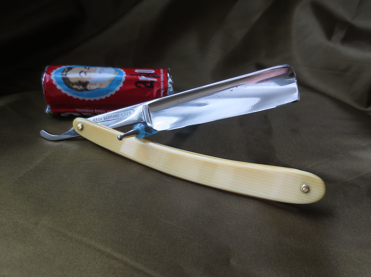 Опасная бритва H.M.C. Cutlery Co New Bedford Mass. Нenry M. CHRISTENSEN. Инструмент находится в хорошем состоянии, заводская полировка, заводская оправа из пластика с имитацией под слоновую кость, заклёпки - латунь. Фирма старая, время производства бритвы ориентировочно - начало 20-го века. Очень удобный удлинненный хвостик бритвы с клеймом "Hand Made", ручная работа. Оправа снималась для полировки места сопряжения с передним пином и установкой дополнительных латунных шайб, смазана вазелиновым маслом, внутри бритвы всё чистенько и опрятно, как только с завода. Заточена на японских водных камнях, продезинфицирована и полностью готова к работе после покупки, купил и брейся! Ширина клинка - 5/8 дюйма, очень универсальная ширина, как для обучения, так и для постоянного использования, рекомендовал бы новичкам, как весьма достойный вариант для начинания на поприще опасного бритья... Также всегда в продаже недорогие ремни для правки и при покупке бритвы и ремня отправка за мой счёт хоть на Таймыр... Начинающим подскажу и покажу, как пользоваться и ухаживать за инструментом. Цена - 3850 рублей.