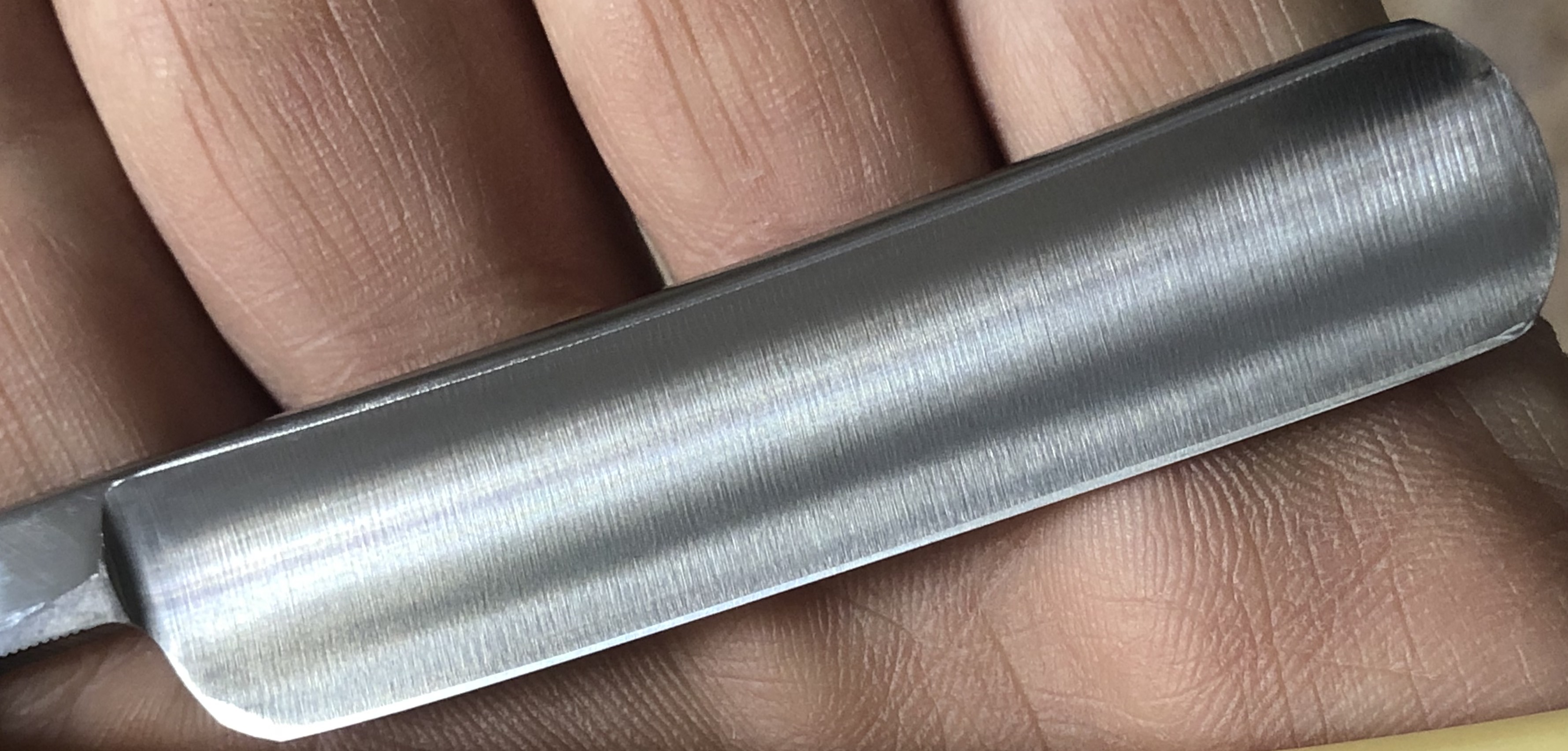 Ширина полотна-17 мм Толщина обушка-4 мм Полная вогнутость. Углеродистая сталь. Бритва в идеальном состоянии, без признаков пользования и износа.Можно сказать внешний вид новой.Бритву разобрал, чтобы поправить кривой пин, заодно и почистил район эрля от окисления.Дополнительно установил внутренние шайбы, для надежности.Идеальная геометрия клинка:кромочка равномерна по всей длине.Сталь и кромка чистые, без видимых дефектов.Очень хороший вариант для новичка,в качестве первой и недорогой.Родная коробочка в комплекте. Заточена и готова к бритью. Цена-3800 р с доставкой.[/b][/QUOTE] ПРОДАН Внимание! Важная информация! Spoiler Show