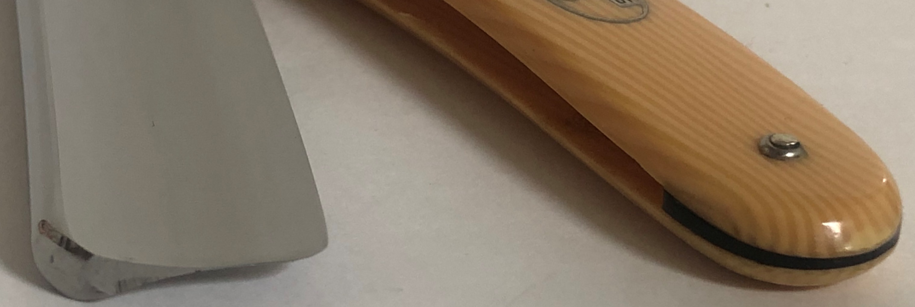 Не разбиралась и не ремонтировалась мной.Все полностью в оригинале, включая коробочку. Родная шлифовка и полировка.Сталь чистая,без критичных дефектов.(несколько "точек времени" на эрле не в счет).Идеальная геометрия клинка. Заточена и готова кбритью.