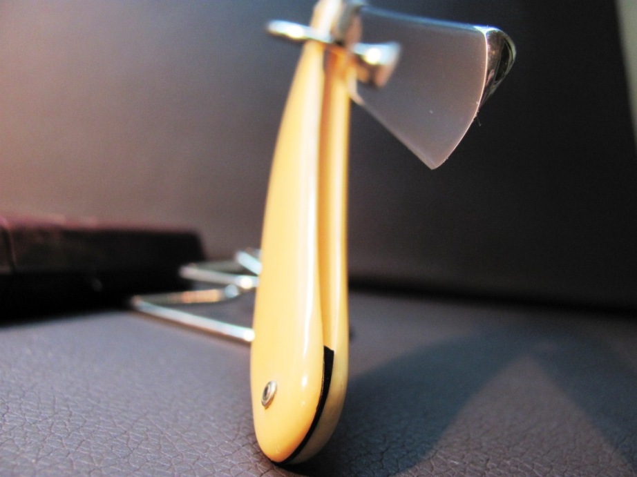 Параметры: ширина 16,5мм, обух 4,3мм. Ручка из кости, ровная, без потерь. Возраст- скорее всего довоенный выпуск на экспорт. Бритва прошла процесс реставрации и заточки лично мной, пины , геометрия, клеймо производителя были сохранены. Продано Oxford Razor Show