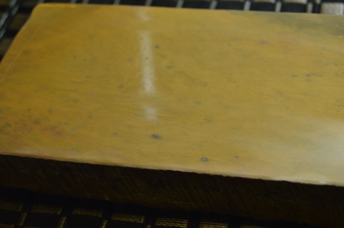 Re: Продаётся от artemarut1 Распродажа страницы №1Spoiler Show Японский камень, цвет солнечный (Иромоно), твердость около 4+ очень тонкий финишный камень, использовать лучше всего последним в сете, суспензию добровольно не дает, но очень легко выжать с помощью нагуры. Такой тип камней можно использовать без сета нагур, достаточно одной более твердой чем сам камень. Нет каких либо царапающих включений, линия на камне исключительно цветовая, обработан против расслаивания (бока и низ, некоторое время камень был в моем рабочем сете). Размер в максимуме 167/83/27мм Цена Продан Spoiler Show