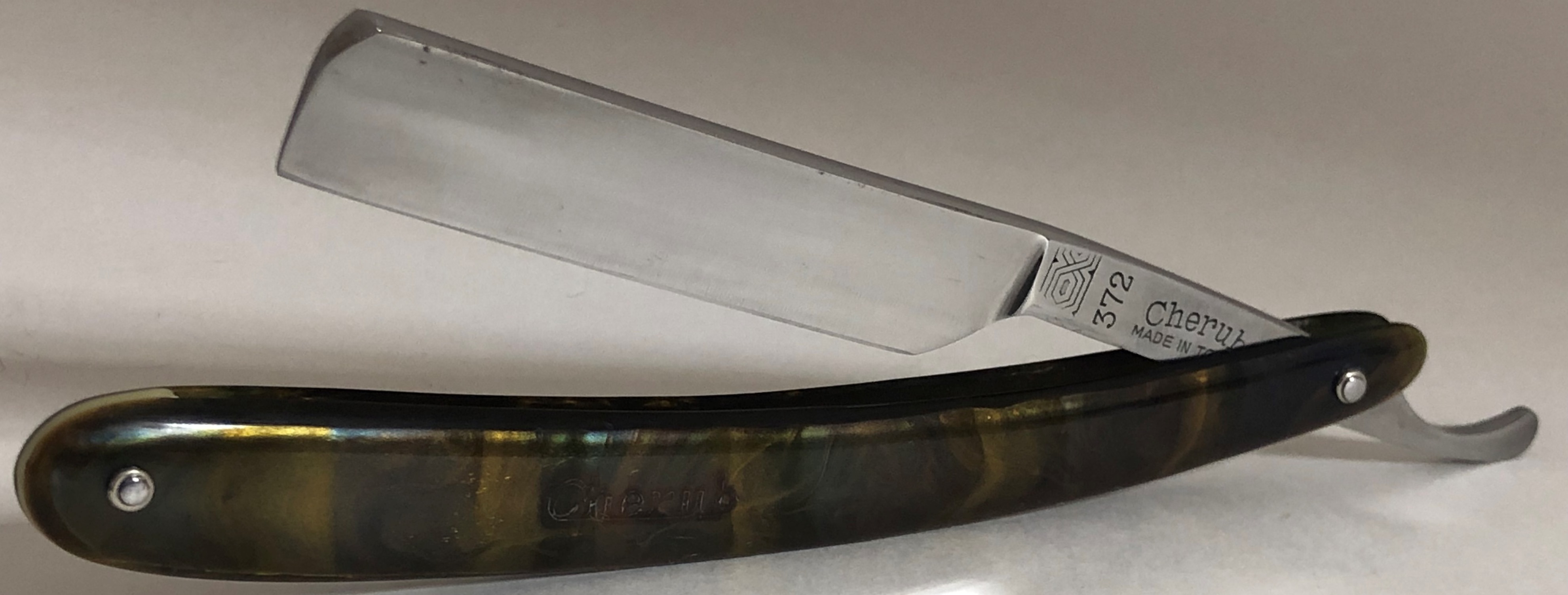 Бритва среднего размера, в очень хорошем сохране.Была разобрана, немного освежено полотно от патины и снова собрана, с сохранением оригинальных пинов.Яркая, аляпистая и родная оправа.Идеальная геометрия клинка-кромочка равномерна по всей длине.Если нет желания приобрести более крупных собратьев, то вот такой Херувим будет в самый раз.Заточена и готова к бритью.