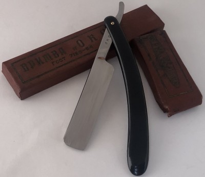 Бритва находится в идеальном состоянии, с еле уловимыми следами пользования.Заводская шлифовка полотна. Бритва была разобрана, для удаления окисления в районе осевого пина.Установлены немецкие втулки, с добавлением внутренних шайб.Кромочка равномерна по всей длине.Заточена и готова к бритью. Очень неплохой и недорогой вариант для новичка.Состояние новой бритвы.