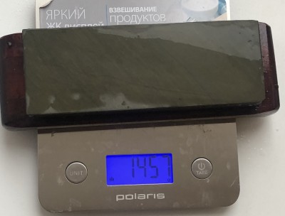 Камень со склада столярной мастерской.Подойдет для финиша бритв, ножей и другого РИ. При работе с бритвами выдает прекрасный результат, тактильно не такой "стеклянный".Ощущение мягкости хода присутствует.Практически не выдает собственной суспензии при работе с Асано нагурами.В комплекте идет томо-нагура,наверное от такой же породы:тонкая. Суспензия молочного оттенка и выделяется хорошо.Нож после такой доводки также получил практически бритвенную остроту. Для тонкой доводки бритв другого и не надо. Красивый, глубокий серо-зелёный цвет, с диагональными полосами.Рабочая поверхность без дефектов:трещин, пор, "волосяных линий" и прожилок.Отличный, универсальный экземпляр для разного инструмента, за счет своей толщины будет радовать не один десяток лет. Камень притерт и готов к работе.