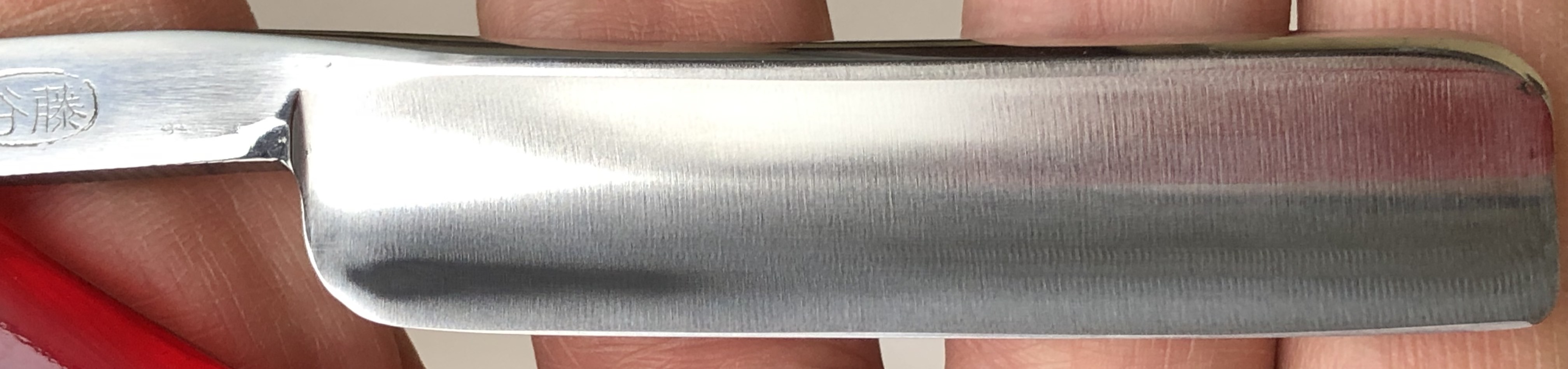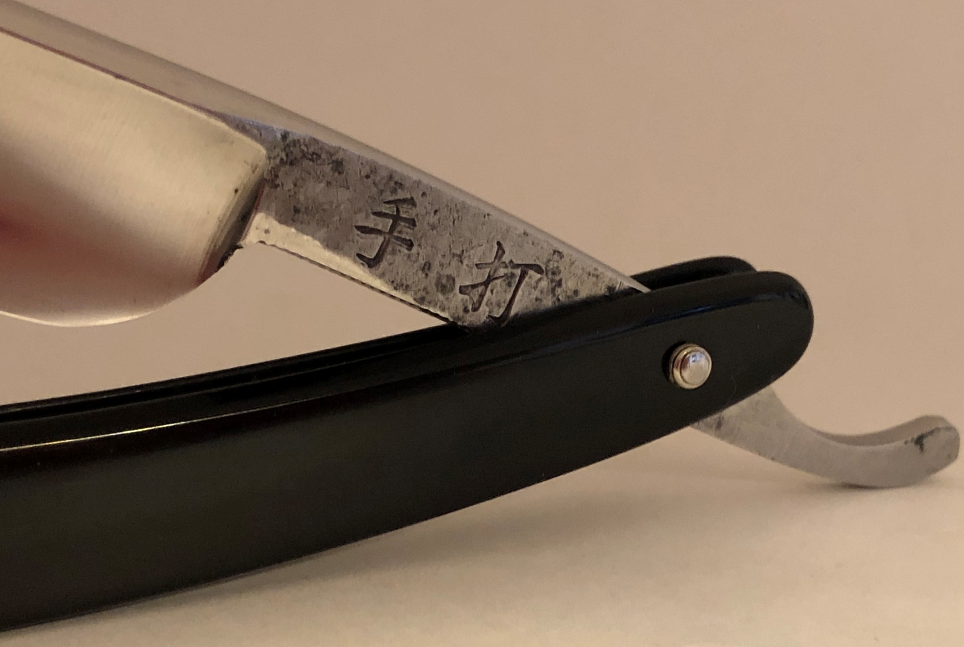 Бритву разобрал,немного привел в порядок и снова собрал, сохранив оригинальные пины.Состояние очень хорошее, без активных следов пользования.Металл без видимых дефектов.Идеальная геометрия клинка. Сталь в заточке действительно очень приятная и понятная.Бритва по японски аскетична, ничего лишнего, но в тоже время все сделано безупречно, на высоком уровне.Заточена и готова к бритью. Очень хорошо бы могла подойти в качестве относительно недорогого, но отличного инструмента.Не пропустите!