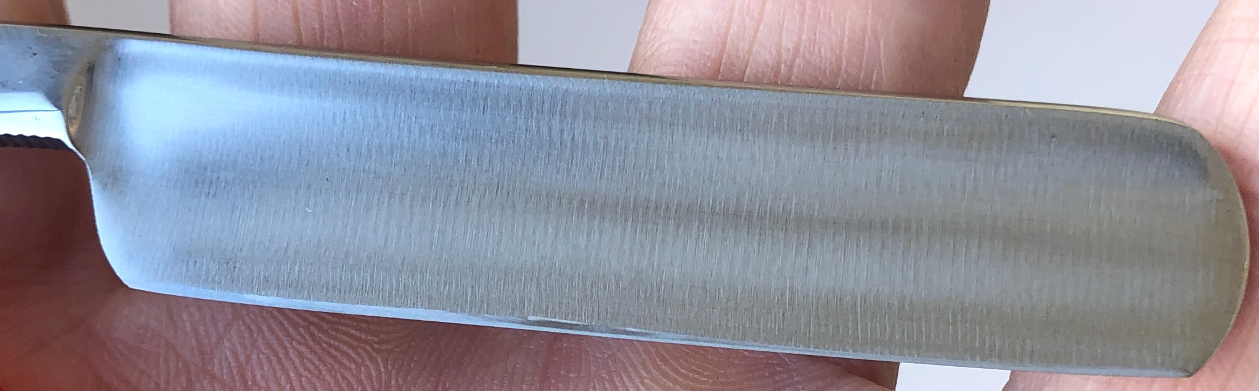 Ширина полотна-21 мм. Толщина обушка-6.3 мм. Форма лезвия-1/2 клин. Углеродистая , шведская сталь, как наиболее удачная для производства бритв. Бритва в очень хорошем и пользованном состоянии.Полотно было приведено в порядок и умеренно отполировано.Кромочка равномерна по всей длине. Сталь чистая от разного рода видимых дефектов.Тяжёлая.Заточена и готова к бритью. Цена-12500 р с доставкой.[/b][/QUOTE] ПРОДАН Spoiler Show Spoiler Show