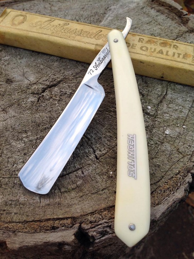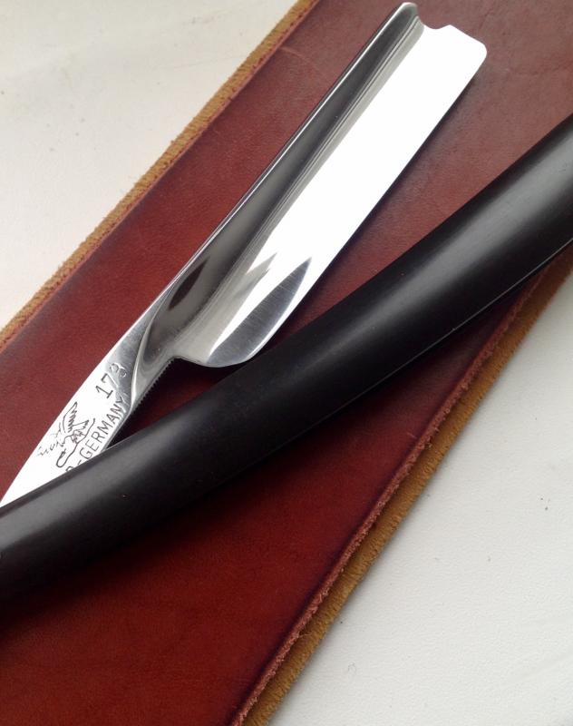 Ручка родная, в прекрасном состоянии, клинышек кость. Нижние пины от Егора. Полотно в хорошем сохране. Кромочка- ниточка! Длина режущей кромки 83 мм!!! Заточка как всегда N*X*S Spoiler Show Серьезный немец. Ширина полотна 6\8. Есть небольшие цяточки под обушком. Родной. кофр. Интересная форма. Бритье на "5+" Продана. Spoiler Show