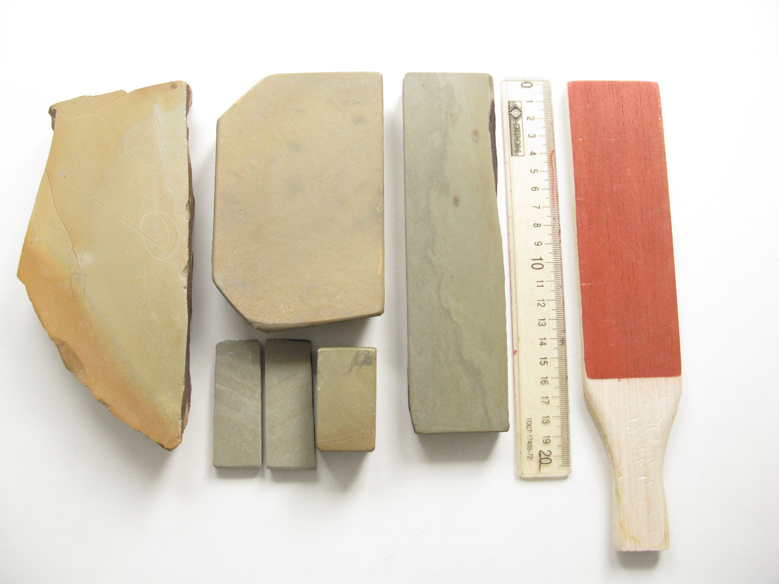 - Накаяма коппа, среднее качество, покупал ещё несколько лет назад за 200у.е., пусть так и стоит. Тест по запросу - тут где-то он уже светился. Камень не твердый, если что хорошо как большую нагуру, для этого и пкупал. Времеенно фиксирую курс на 75руб (это ниже официального). - Накаямаа, стандарт 135*82мм, красивая корка, проблески карасу, штампики плохо, но ещё видны, твердость 4,5. Качество высокое. 230у.е. Времеенно фиксирую курс на 75руб (это ниже официального). - Оозуку, стандартный сан-мастер размер, твердость 4,5. Обычный камень начального уровня. 90у.е. в комплекте томо-нагура 70г. Притирчик с оксидом хрома или железа по запросу. Времеенно фиксирую курс на 75руб (это ниже официального). Есть ещё, но цены приличные, так что не предлагаю, но кому интересно - пишите - много чего есть в личной коллекции, просто лень возиться с оформлением постов.