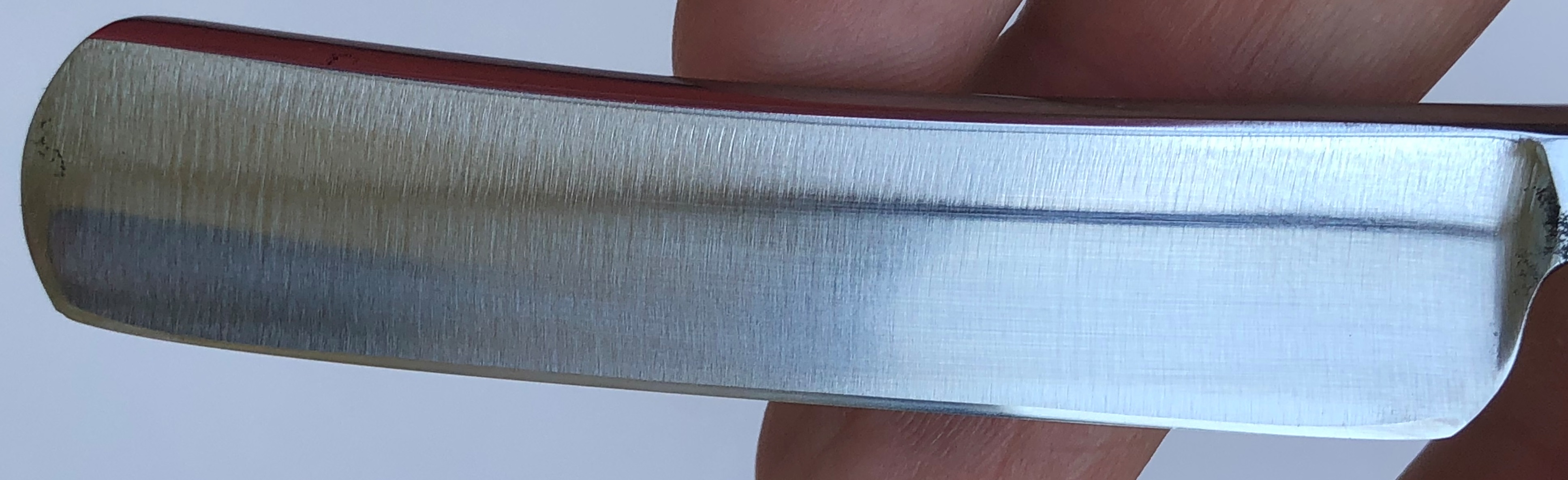 Бритва в очень хорошем состоянии. Реставрация клинка от Frans, новая роговая оправа тоже от него. Мои доработки также присутствуют. Хорошо сохраненная геометрия полотна.Кромочка равномерна по всей длине.Несколько мм у пятки не проточено, чтобы не испортить клинок камнями.Эффектный граненый обушок. В общем и целом красивая французская классика, в отличном и боевом состоянии. Заточена и лично протестирована. Все на очень приличном уровне.