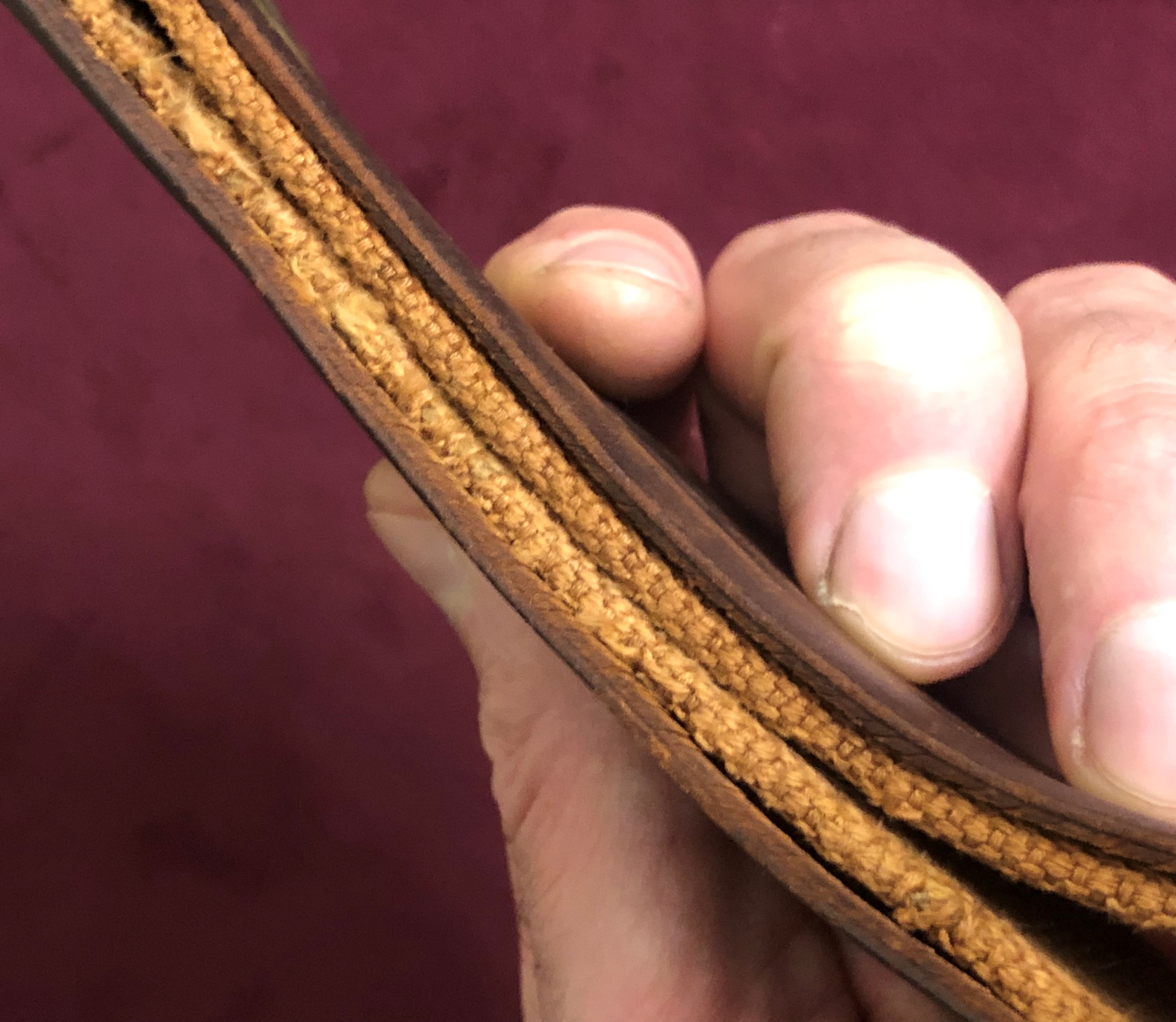 Льняной холст постирал, так что он готов к работе.Можно пришить кусок кожи снизу холста, как и было изначально.Кожу кордована также можно подготовить и использовать для колодочного ремня. Металлическая оригинальная висюлка не ржавая,так что пойдетъ..Короче, непаханное поле для творчества..