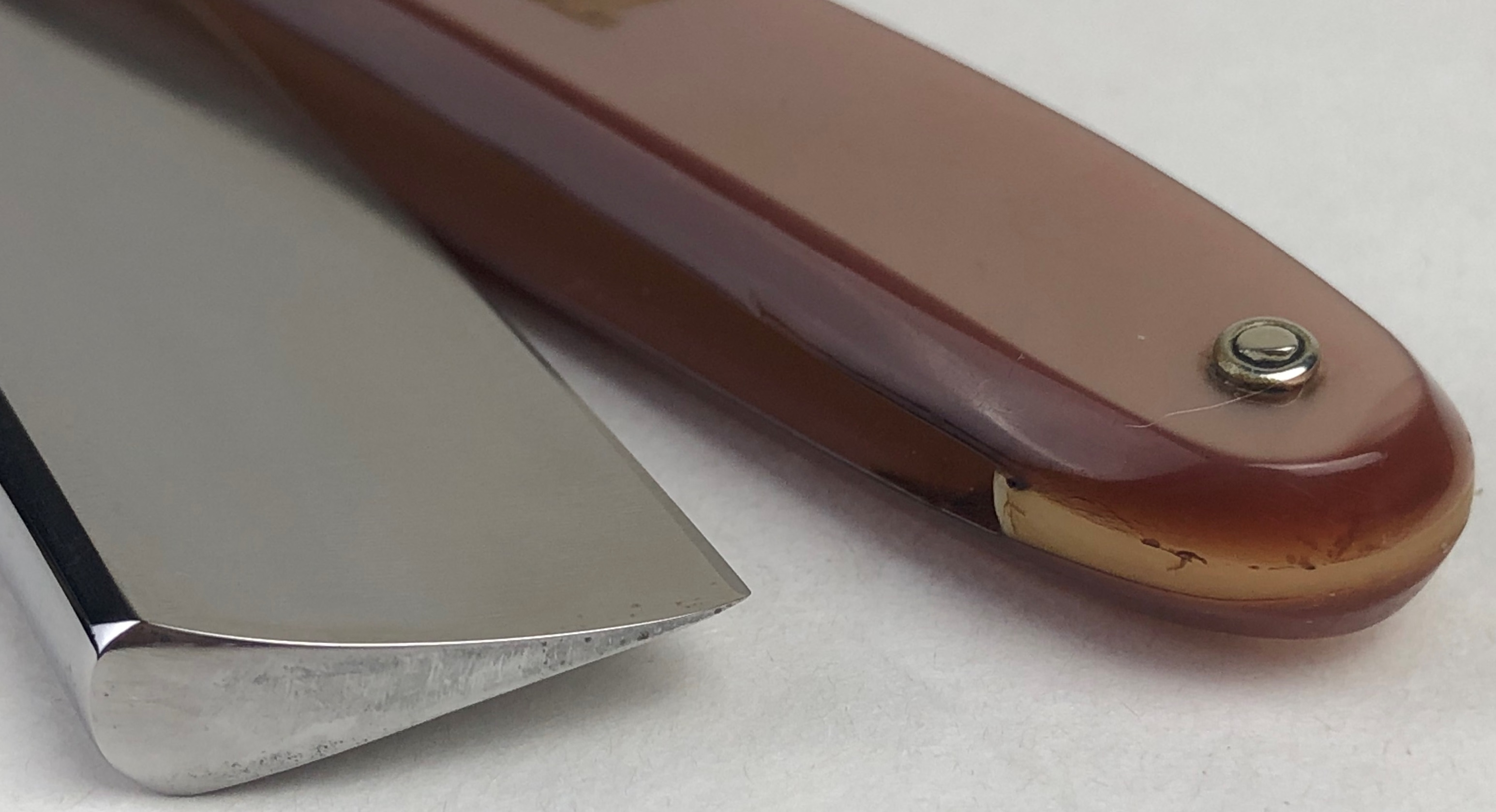 Бритва в прекрасном состоянии для своих лет. Минимальные следы пользования, практически незаметны.Не разбиралась и не ремонтировалась.Оригинальная шлифовка и полировка полотна. Красивая, эффектная гравировка.Очень хороший и удобный вариант для новичка.
