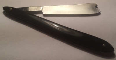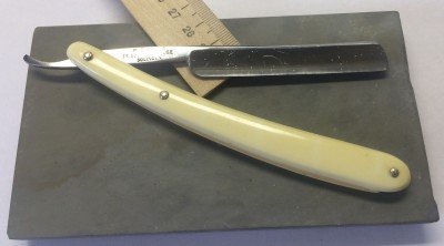 Название списать трудно ибо с французским не дружу. Так что Le MAIRE LE MATRE LEMAIRE LEMATRE В общем как то так Возраст бритвы лет 150 или 160 (мне так кажется Бритва отрегриндена. Ручка сделана из рога и полностью повторяет оригинальную ручку которая была в плачевном состоянии. Бритва заточена с одним слоем изоленты (так как у пяточки слишком узко и если точить без изоленты то там еще сузится а нам этого не надо) Ширина в самой широкой части 19 мм. Клинышек олово. Пины золинген Гринд грубоватый оставлен намеренно ибо 150-200 лет назад зеркало на такой переменной геометрии вряд ли было (зы немножко попортил гринд во время заточки - при заточке на 1000 ке протер воду вдоль полотна и оставил царапки, не кретично но предупредить должен) В общем красота. Цена 10,000 рублей