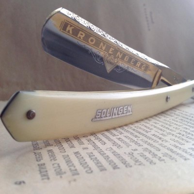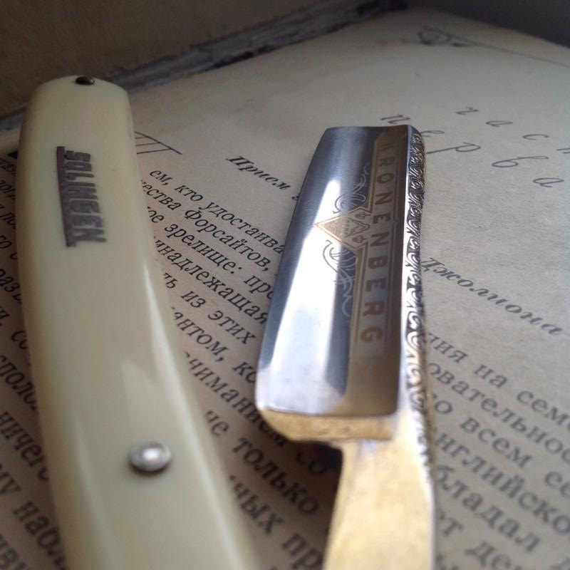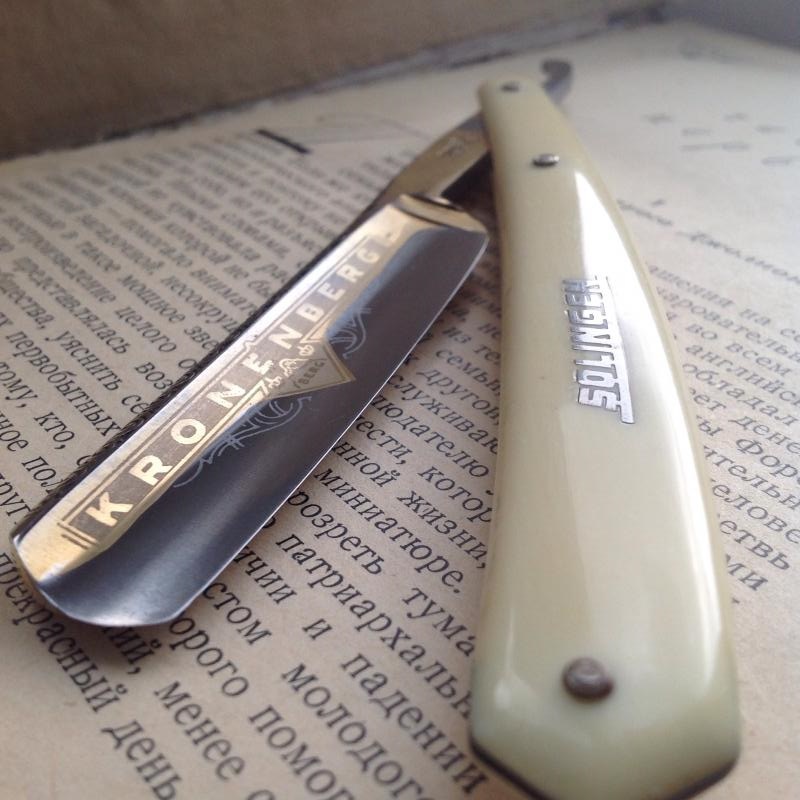 Re: Продаётся от KarangiНемкения Kronenberg отEmil Kronenberg. С недельного набора (среда). Бритва в использовании не была. Очень приличный сохран, как позолоты, так и самого полотна. На не лицевой стороне есть два незначительных, малозаметных следа. Бритва с легкой улыбкой, очень приятная. Сталь на высшем уровне. Размер 5\8. Ручка целлулоид. Продана.