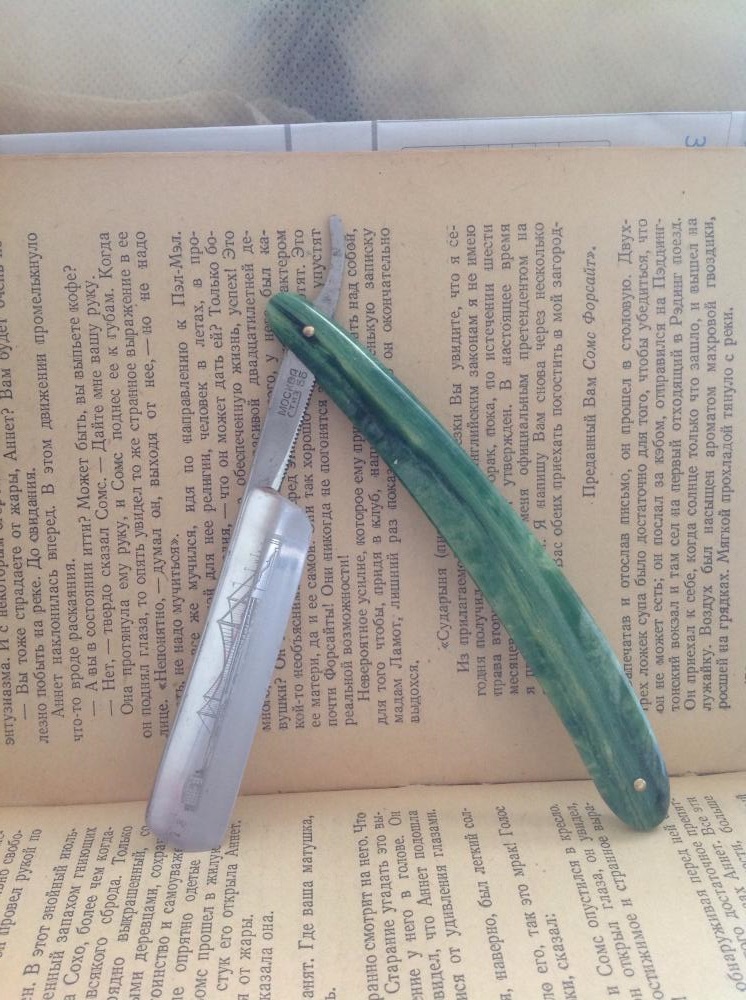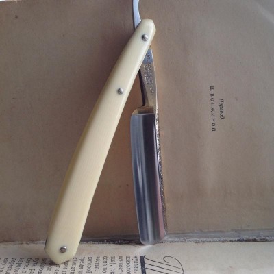 Re: Продаётся от KarangiKiebitz. Сильная бритва! Ширина полотна 4\8. Вогнутость 1\2 клина. Ручка - целлулоид. Имеется родной дом. На полотне(возле головы) есть небольшие поверхностные следы времени, очень частое явление, там где ручка соприкасается с полотном. Приятная и удобная бритва. Ждет своего будущего хозяина.