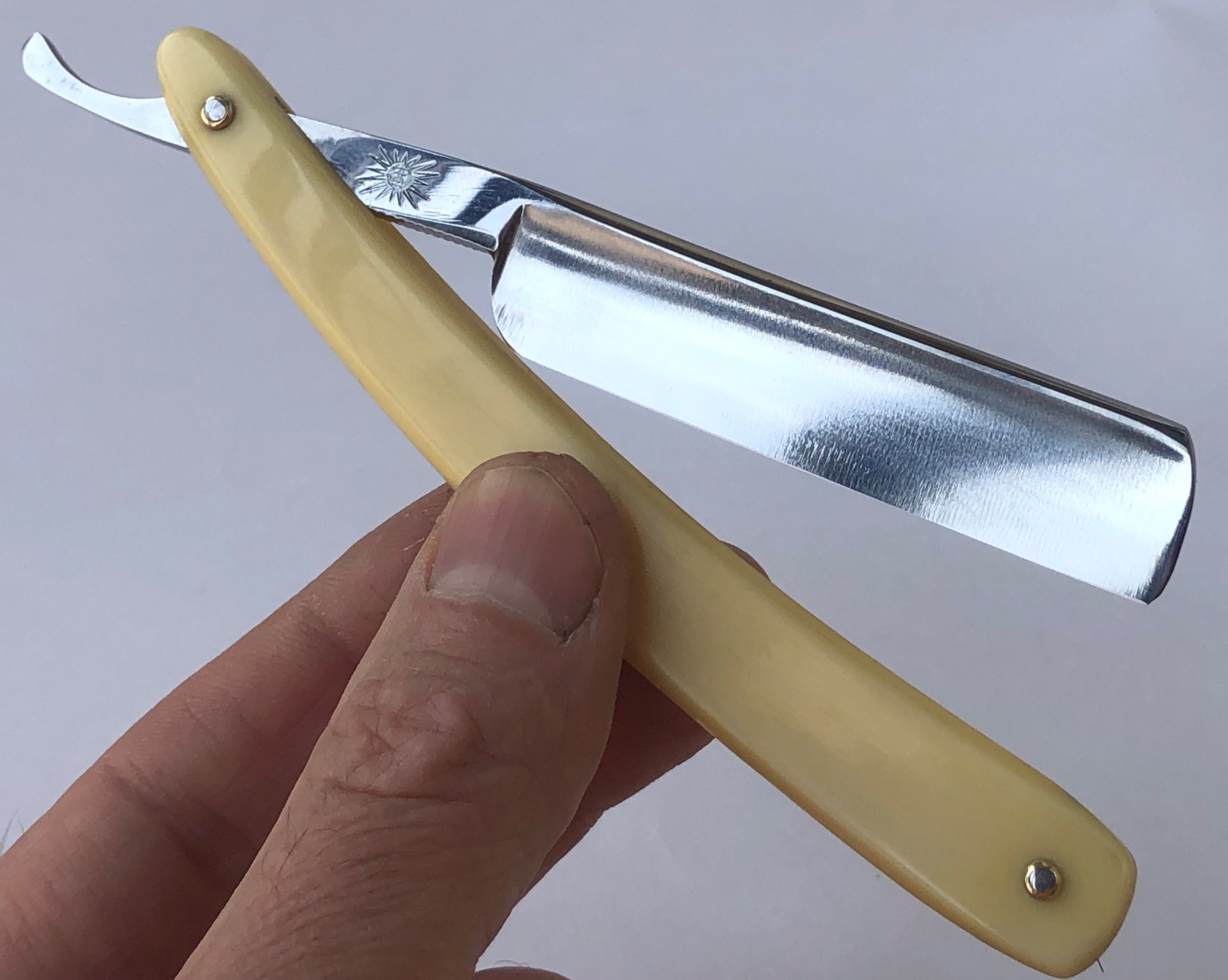 Бритву заточил и с удовольствием лично протестировал, так как всегда приятно испробовать что то действительно редкое.Бритье порадовало:чистое, мягкое, без раздражения, с характерным "шуршанием" сбриваемой щетины.Думал, с чем можно сравнить данную вещь и наверное соглашусь сам с собой, что напоминает нечто среднее между немцами и англичанами начала прошлого века.Очень качественная углеродка.