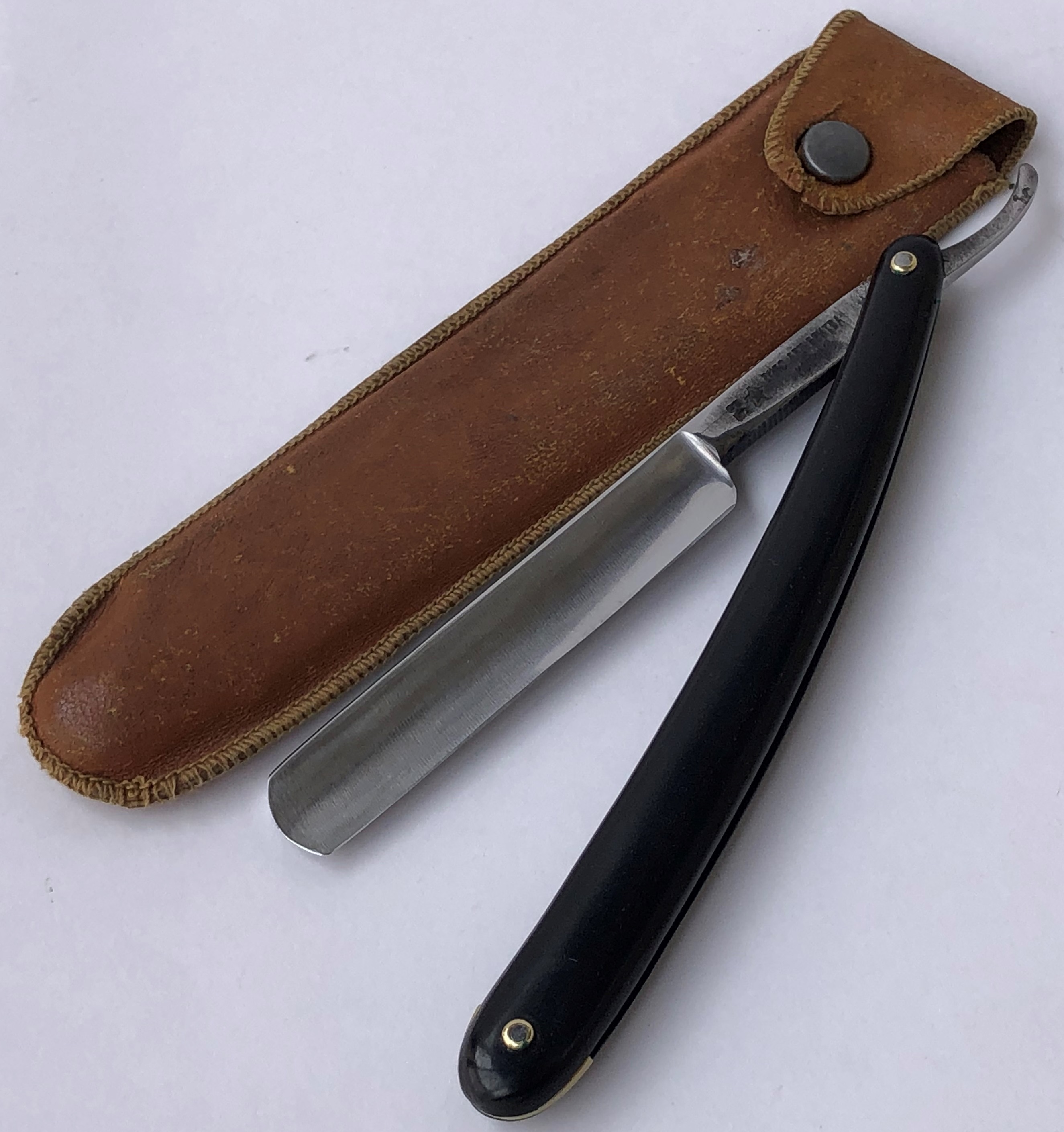 Убрал старинную патину, царапины и умеренно отполировал.Родной осевой пин был аккуратно заново установлен.Бритва в состоянии новой.Идеальная геометрия клинка:кромочка равномерна по всей длине.Бритва удобна во всех отношениях, хоть для новичка, хоть для опытного пользователя.Дорогой родной бакелитовый кейс в комплекте! Бритва заточена и готова к бритью.