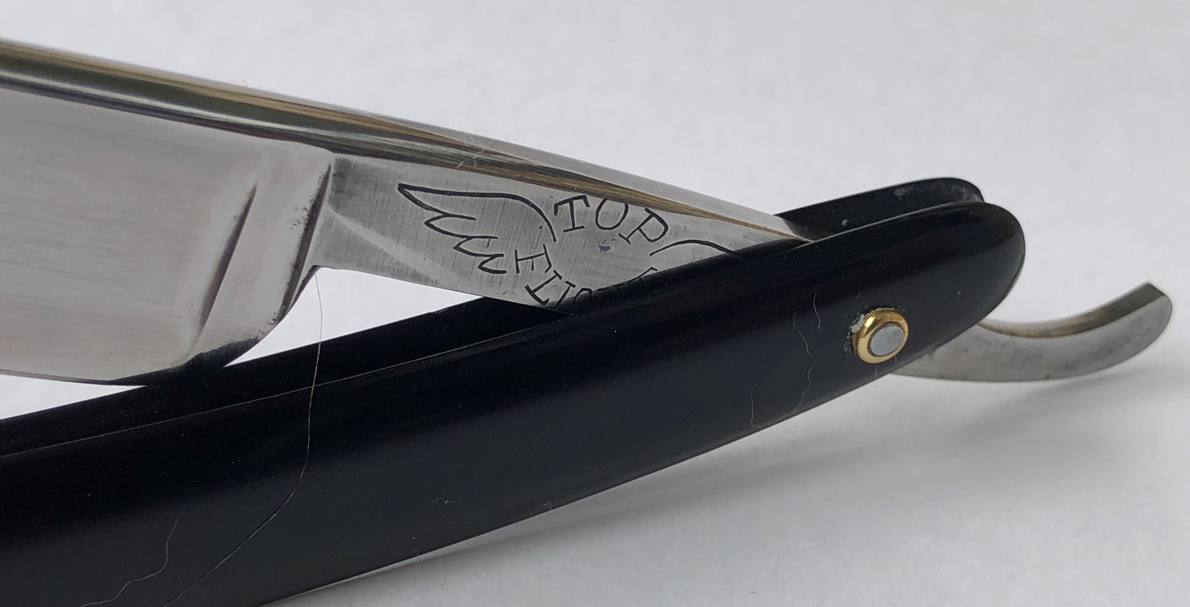 Бритва в очень хорошем состоянии, без активных и еле заметных следов пользования. Ничего не разбиралось и не ремонтировалось. Все в оригинале.Идеальная геометрия полотна.Кромочка чистая от дефектов. Несколько незначительных "точек времени" не стал трогать за ненужностью.Удобная форма клинка. Достаточно тяжелая.Эффектный, ажурный обушок.Очень неплохой вариант для коллекции и для бритья. Исходя из своего опыта могу сказать, что именно нержавеющие стали Фриодур были наиболее подходящие для бритв.