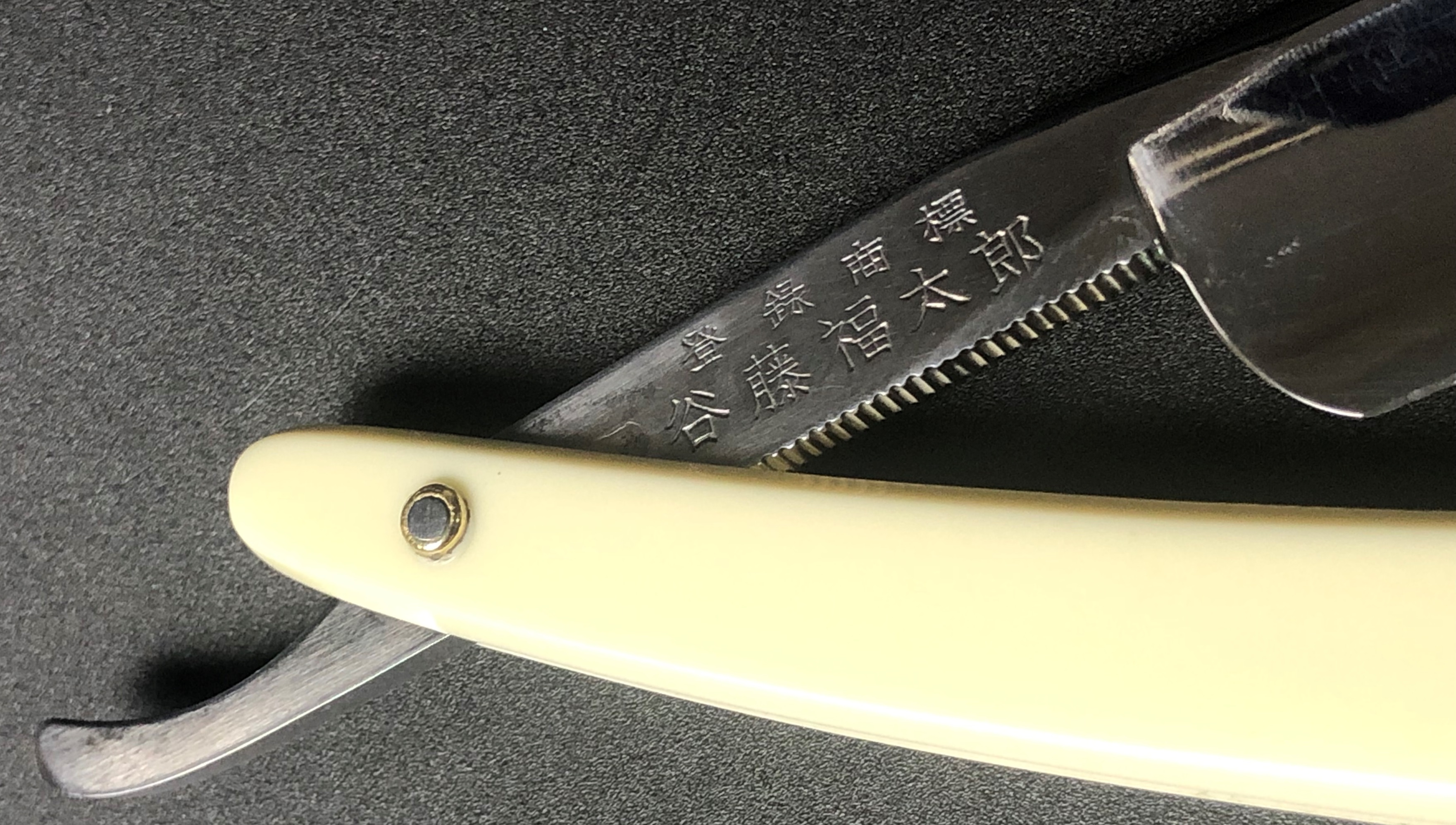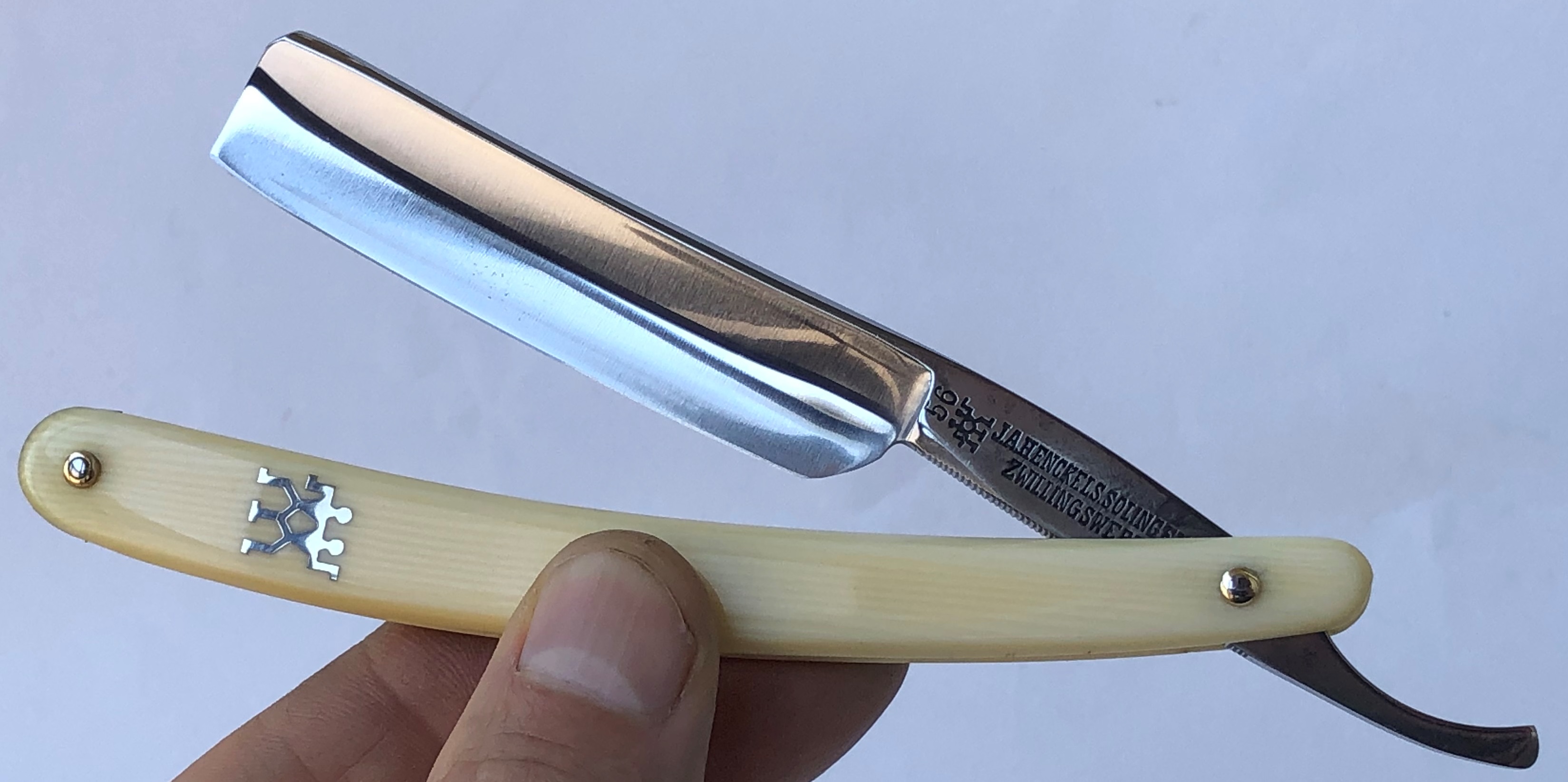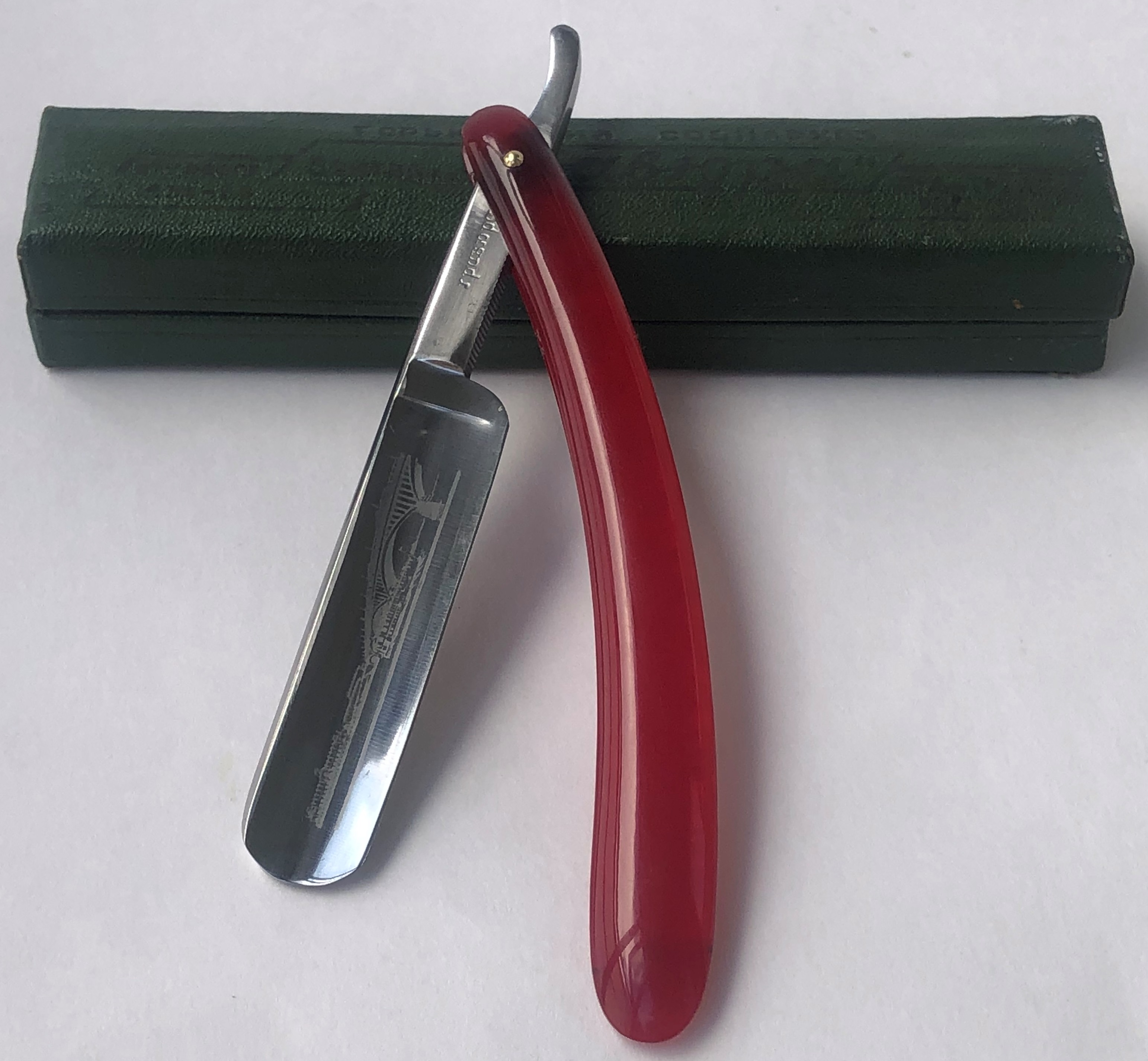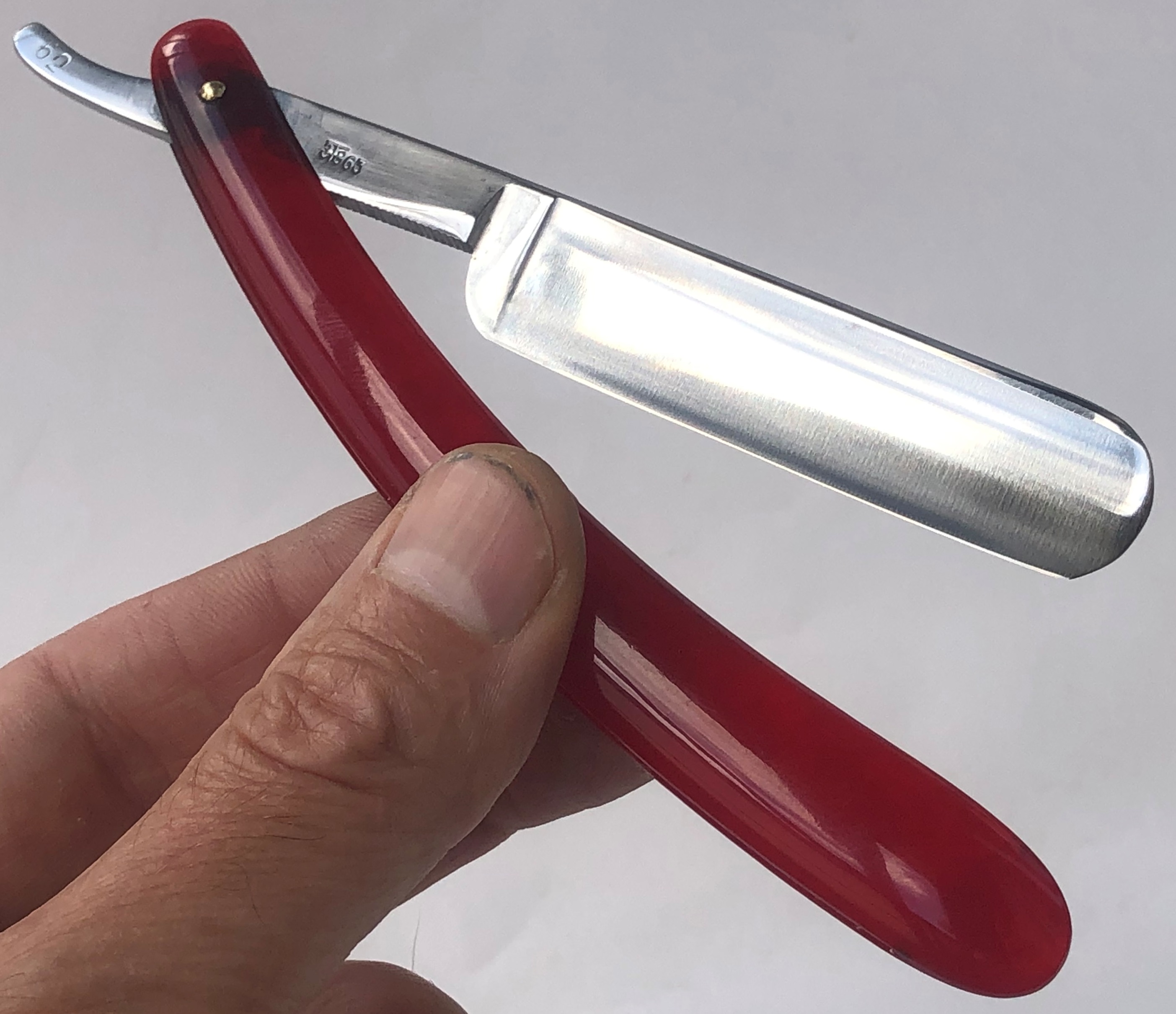 Ничего тут не делал. Бритва была разобрана, для удаления окисления в районе осевого пина, а также замены шайб на двух-цветные втулки.Очень неплохая и редкая вещь.Заточена и готова к бритью.