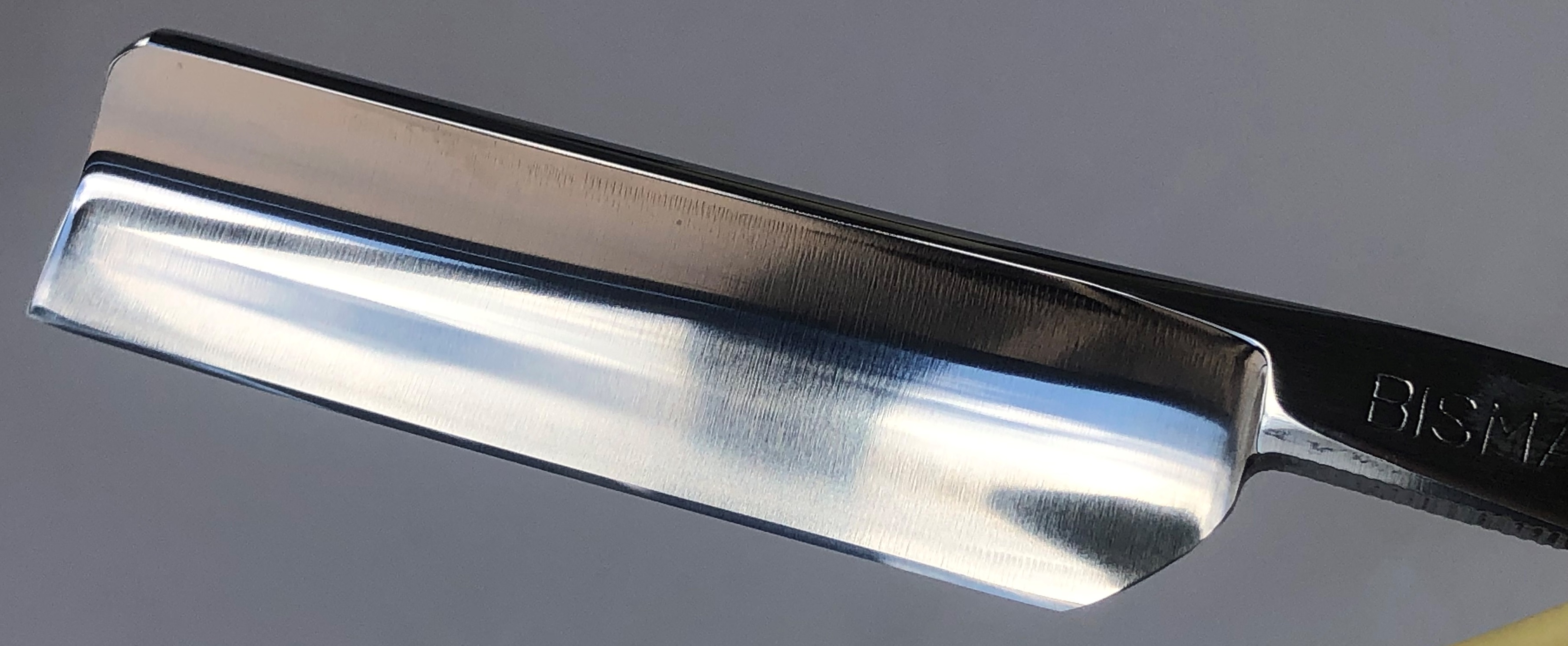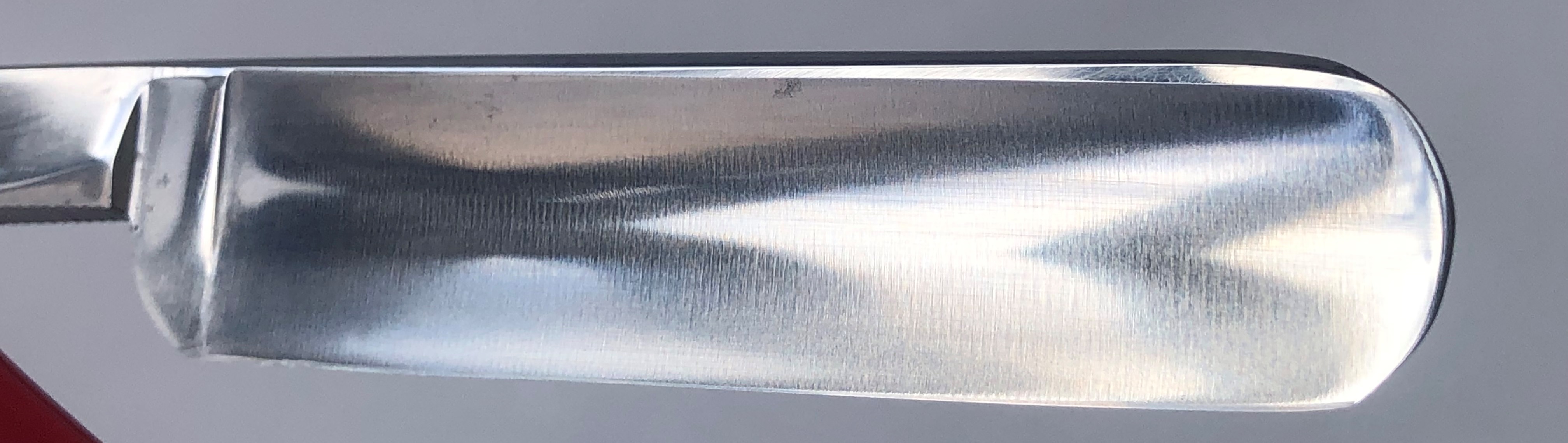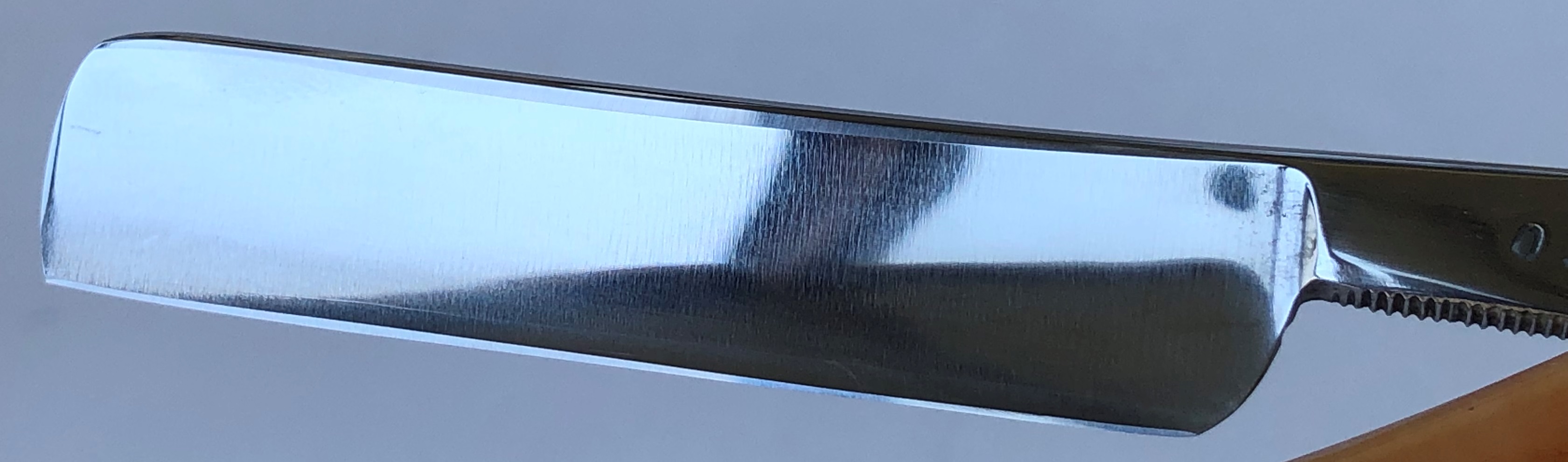 Сталь чистая, без видимых дефектов. Кромочка равномерна по всей длине.Бритва для опытных пользователей в основном. Заточена и готова к бритью. Не пропустите старинную бритву, с отличной, высококачественной сталью.