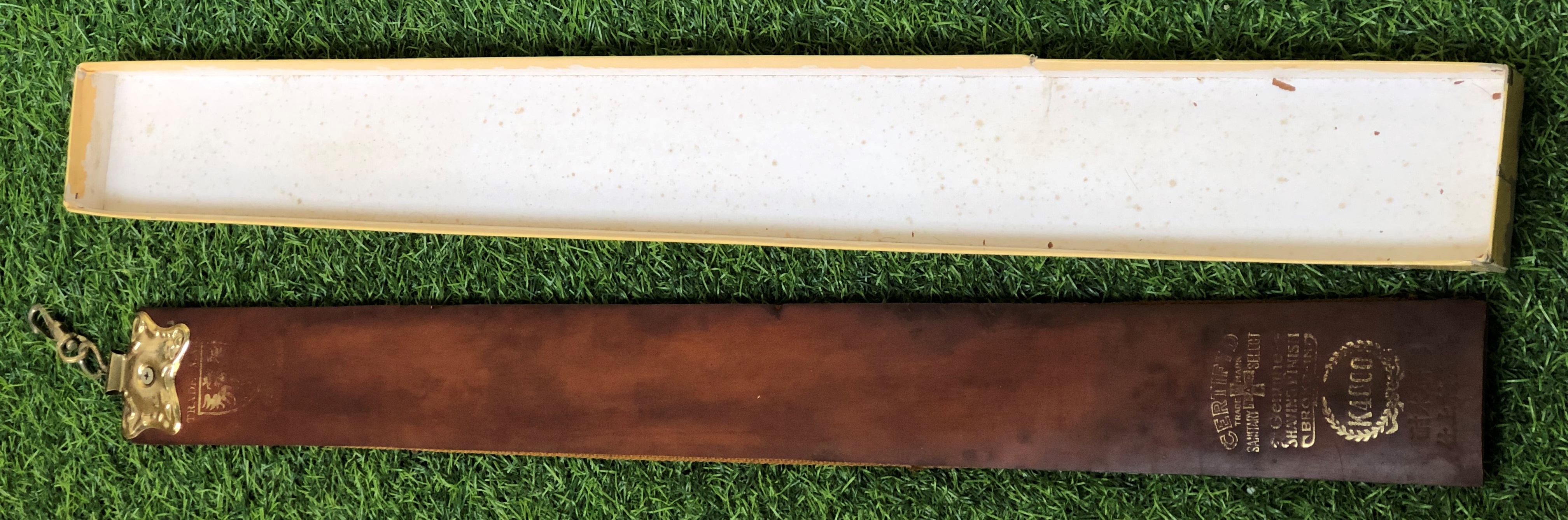 KENGAROO SKIN 1957 от токийской фирмы прошлого-STAR RAZOR STROP Ремень непользованный. В комплекте 3 стропы. 1.Кордован:600х63х4(3.5) мм. 2.Кожа КРС,возможно и лошадь, не знаю:600х63х8(7) мм! 3.Льняной мягкий холст.(железка немного со следами времени, но все возможно исправить). Редчайшая вещь для нашего времени. Из старых запасов. 1950-70-е годы производства. Такие ремни сейчас практически невозможно раскопать и продаются наверное последние экземпляры. Касаемо японских ремней из Кордована информации достаточно много. Сам Кордован в прекрасном сохране. Умеренно жёсткий,что очень хорошо, так как со временем при работе, ремень будет размягчаться и приходить в очень качественное рабочее состояние. Кожа светлая, без дефектов, свойственных природному материалу.Вторая стропа достаточно жесткая и может использоваться для предварительной правки бритвы, либо в качестве подложки для кордована. По желанию можно заменить эту толстенную часть ремня на льняной холст. Родная коробка. Не пропустите редкую вещь в свою коллекцию, либо для работы по прямому назначению. Цена-90500 р с доставкой. Всё будет ХОРОШО...тел:+79065827134