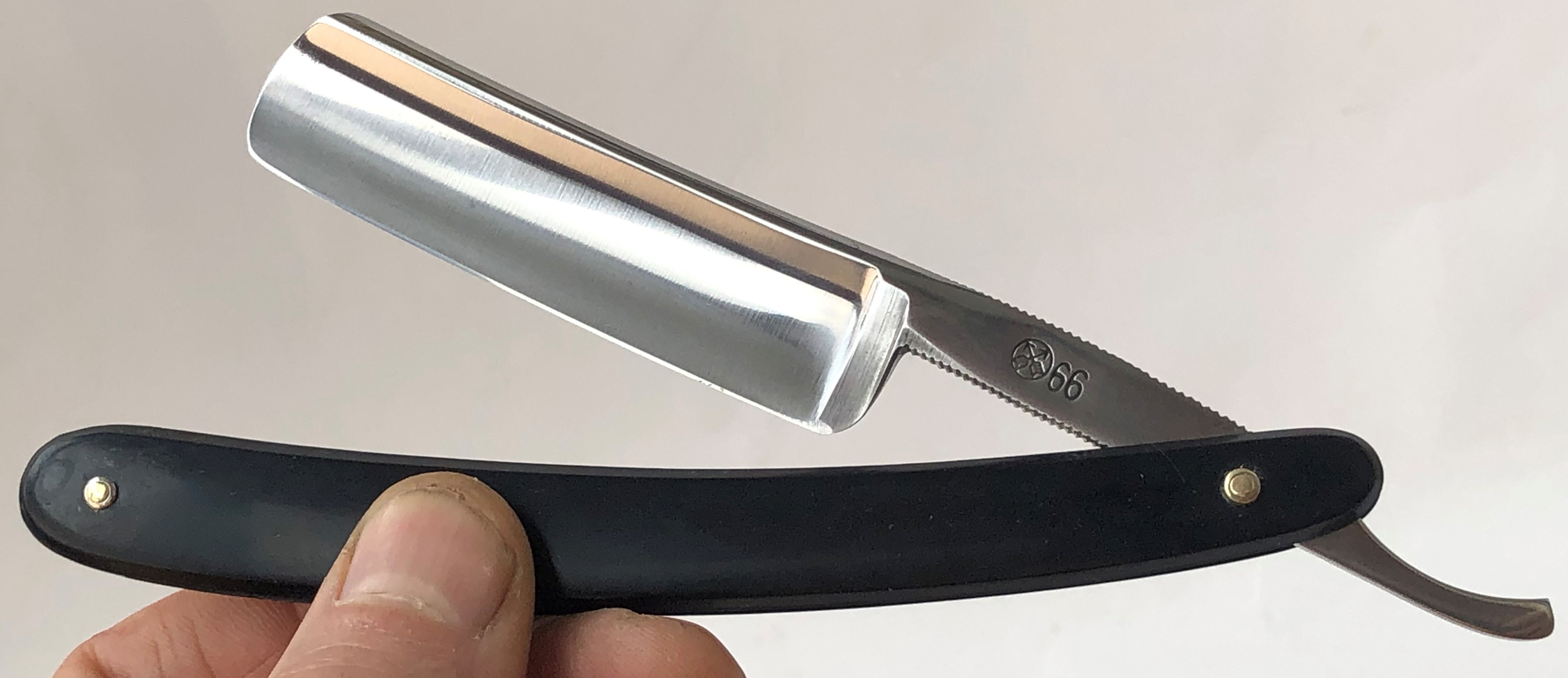 Бритва китайской фирмы, но в основном они появляются в Японии, поэтому пишу, что они имеют японское происхождение. Бритва изготовлена в то время, когда о китайском ширпотребе было еще ничего не известно, поэтому тут мы имеет прекрасную сталь(даже кто то ранее тут писал, что очень похожа на шведскую),качественную слесарку и обработку металла и удобную форму лезвия. Своего рода "золотая середина" при выборе отличной бритвы по принципу цена/качество.Давно мне не попадались в руки 66-е модели, но в свое время бритву оценили многие знатоки, так что не пропустите шикарную вещь в свою коллекцию. Бритва заточена и готова к бритью.