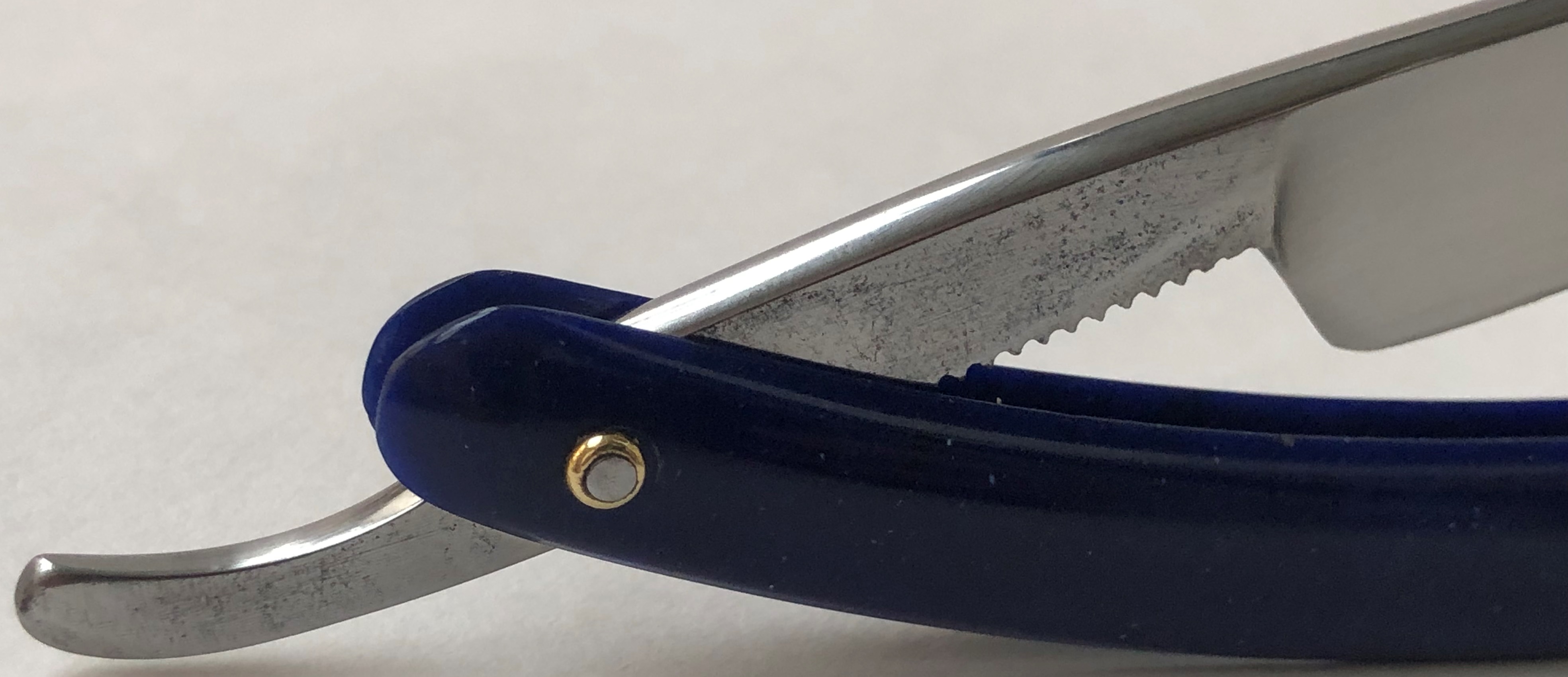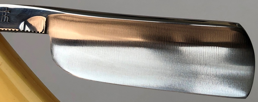 Бритва в прекрасном состоянии, с минимальными следами пользования.Была разобрана для добавления внутренних шайб, с сохранением родного осевого пина.Оригинальная шлифовка и полировка клинка.Идеальная геометрия полотна:кромочка равномерна по всей длине.