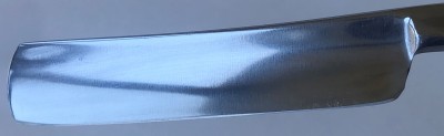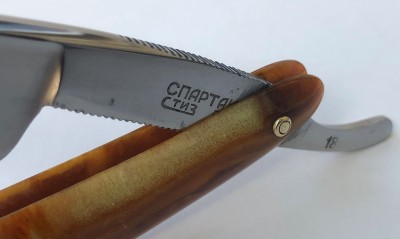 Бритва совершенно нетронутая,была только оттерта от остатков масла с консервации. Ничего не разбиралось и не ремонтировалось.Идеальная геометрия полотна:кромка равномерна по всей длине.Сталь чистая, без критичных и видимых дефектов.Бритва заточена и готова к бритью.