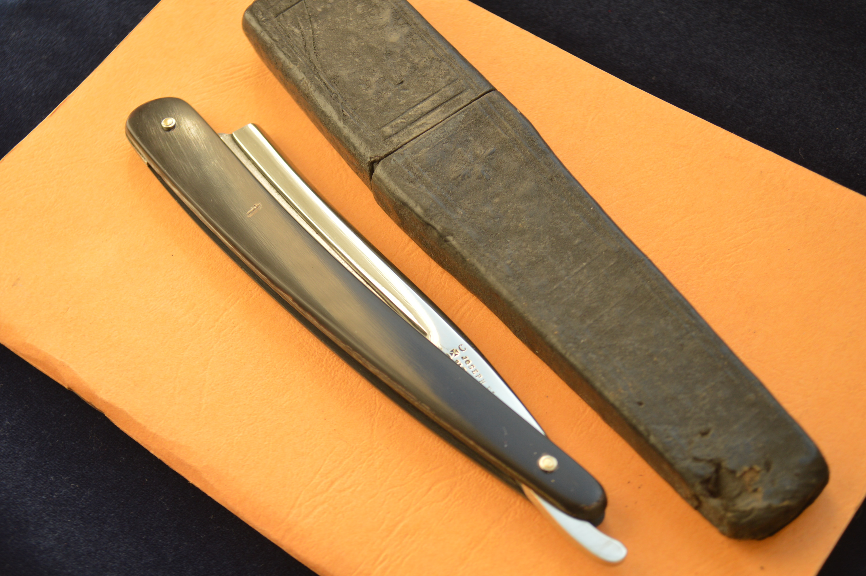 Бритва клин в отличном состоянии ширина полотна – 5/8+, оправа рог в очень достойном для ее возраста состоянии.