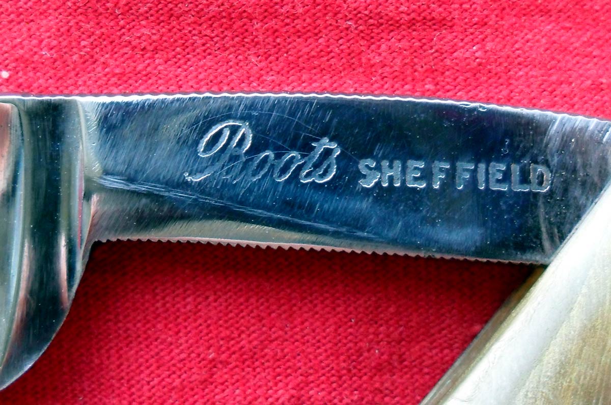Надпись на клинке: Boots Special Razor. Ручка - натуральный рог. По всей видимости, ручка и пины родные. Ширина бритвы 19 мм (6/8 дюйма), толщина обуха 5,5 мм.