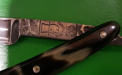 Вторая половина 19 века. Ширина клинка 6/8. Ручка светлый (медовый) рог. Бритва в отличном состоянии приобреталась на форуме. Заточена. Бреет шикарно. Продано. Spoiler Show