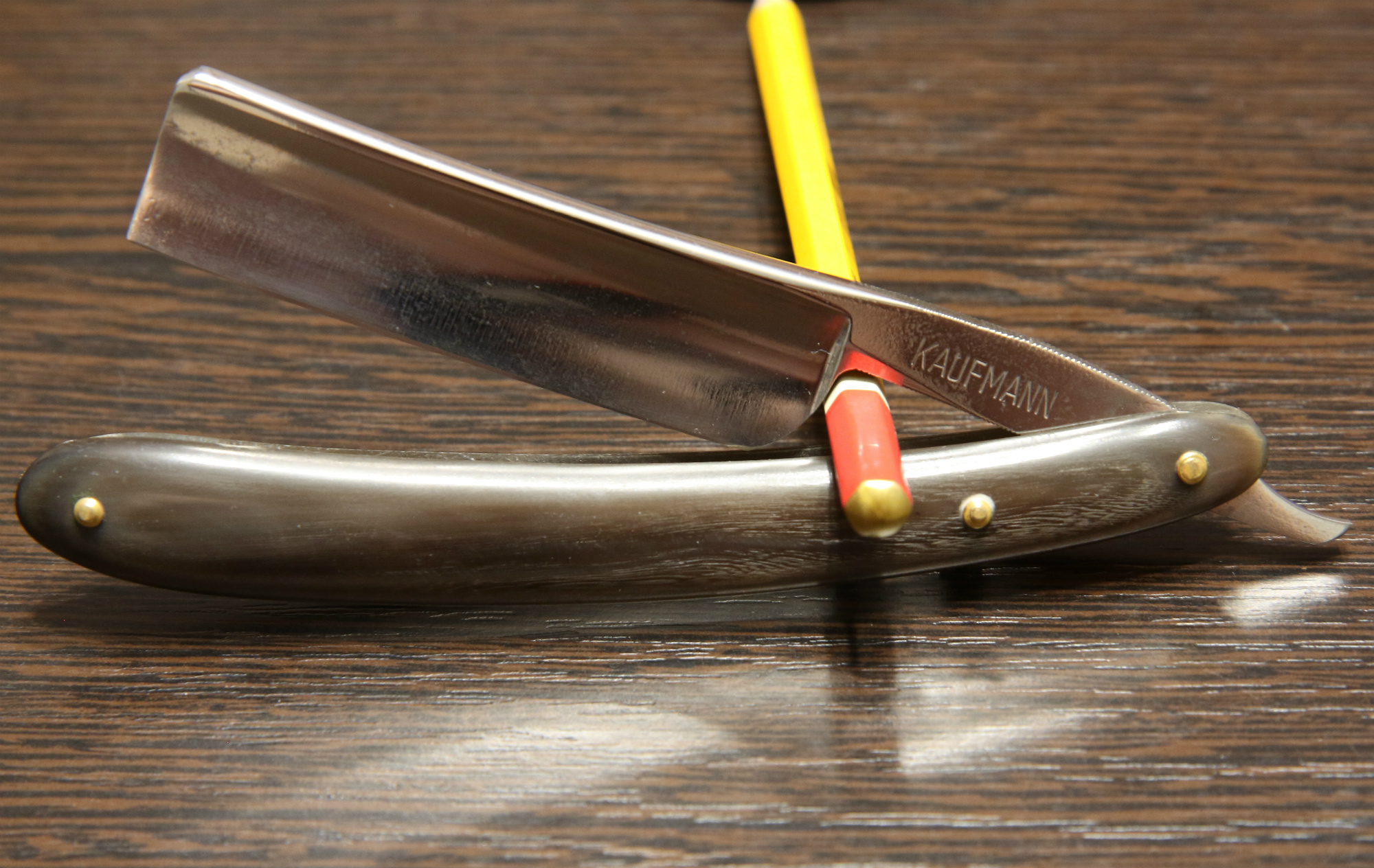 Опасная бритва Kaufmann, первая половина 20 века, сделана в г.Золинген (Германия), ширина полотна 22,5 мм, отличная углеродистая немецкая сталь, полная вогнутость, ручка заменена (сделана из рога буйвола, трехпиновая). Подготовлена мной к бритью (бреет отлично и без лишней агрессии). Крупная массивная бритва с огромным потенциалом по ширине. Цена - руб.