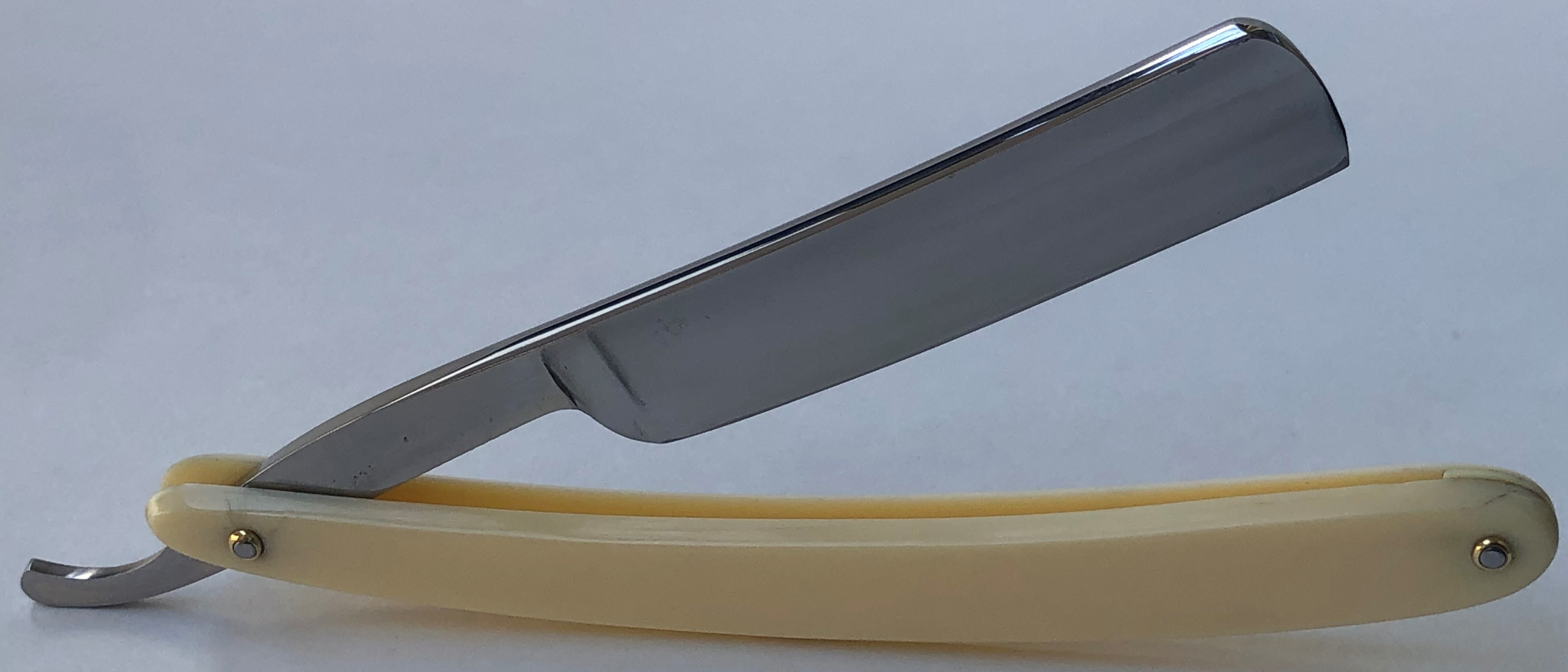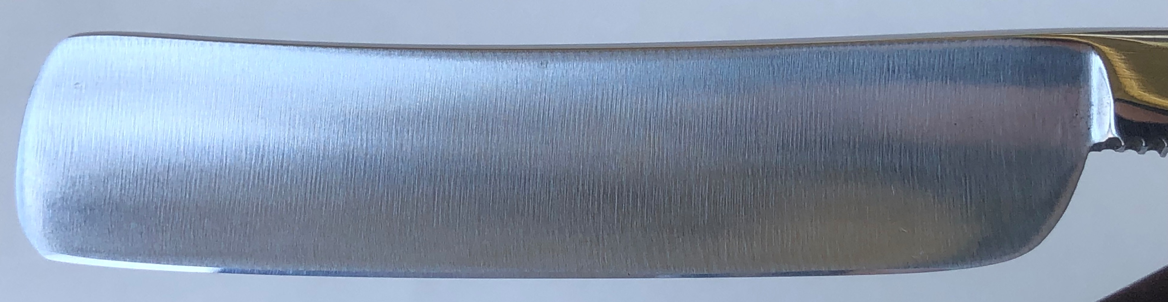Бритва без активных следов пользования.Находится в очень хорошем состоянии, близком к идеальному. Ничего не разбиралось и не ремонтировалось. Оригинальная шлифовка и полировка. Сталь и кромка чистые от видимых дефектов. Идеальная геометрия полотна:кромочка равномерна по всей длине. Заточена и готова к бритью.