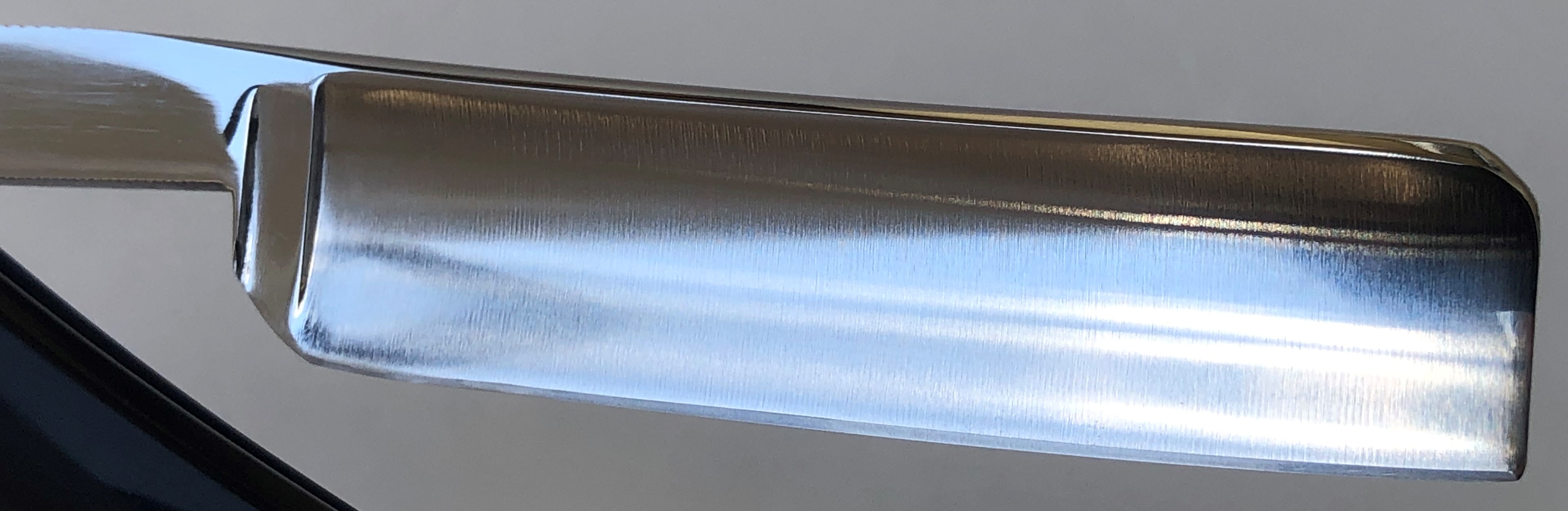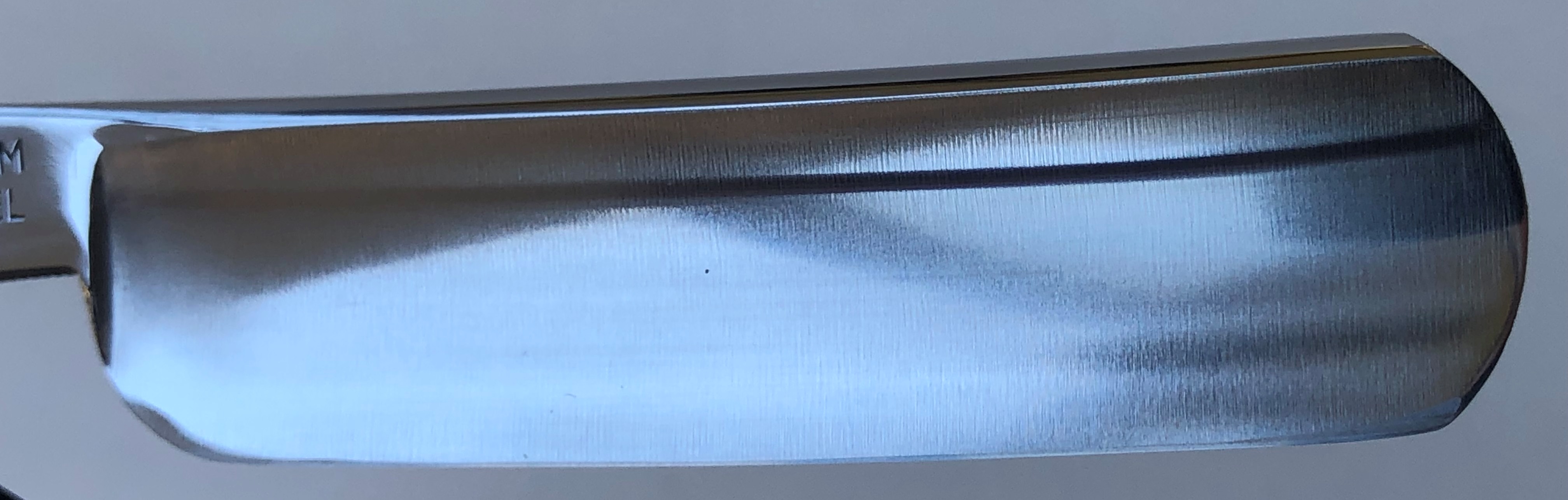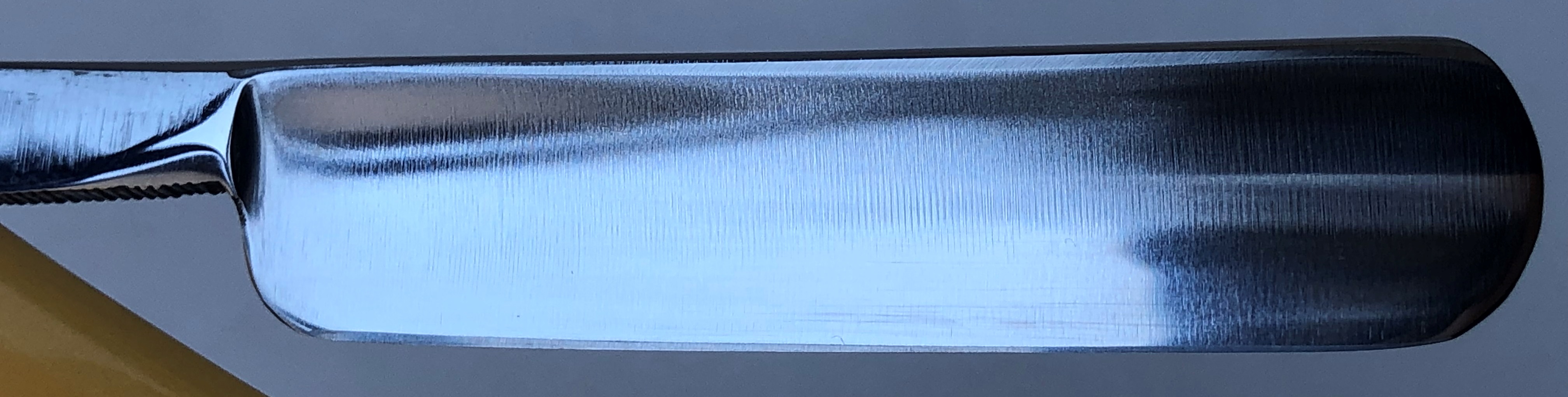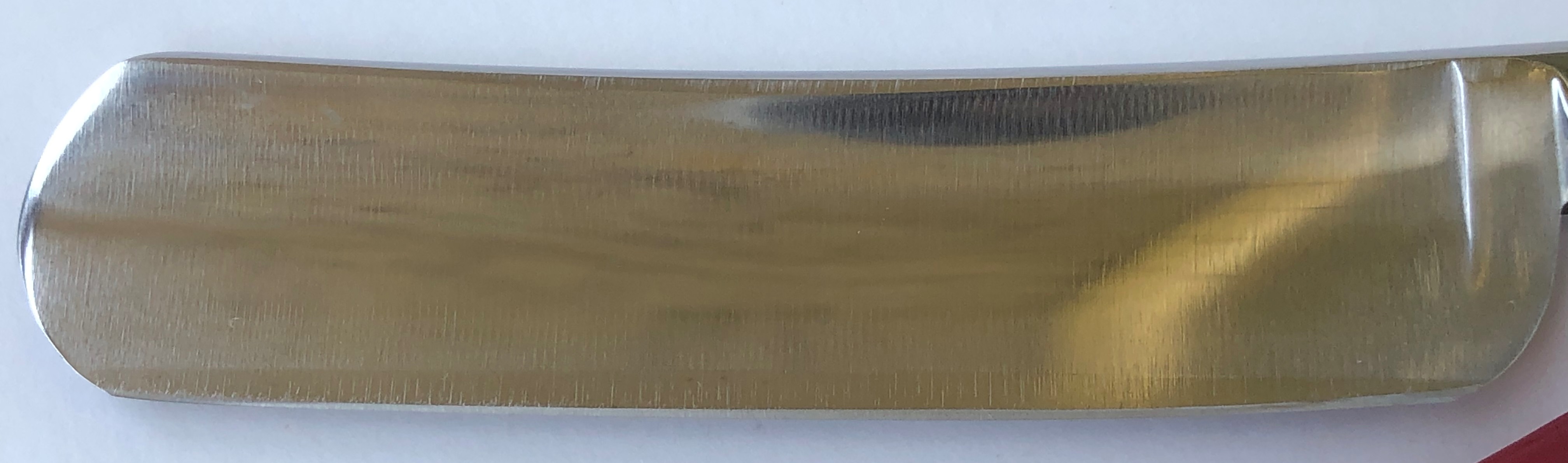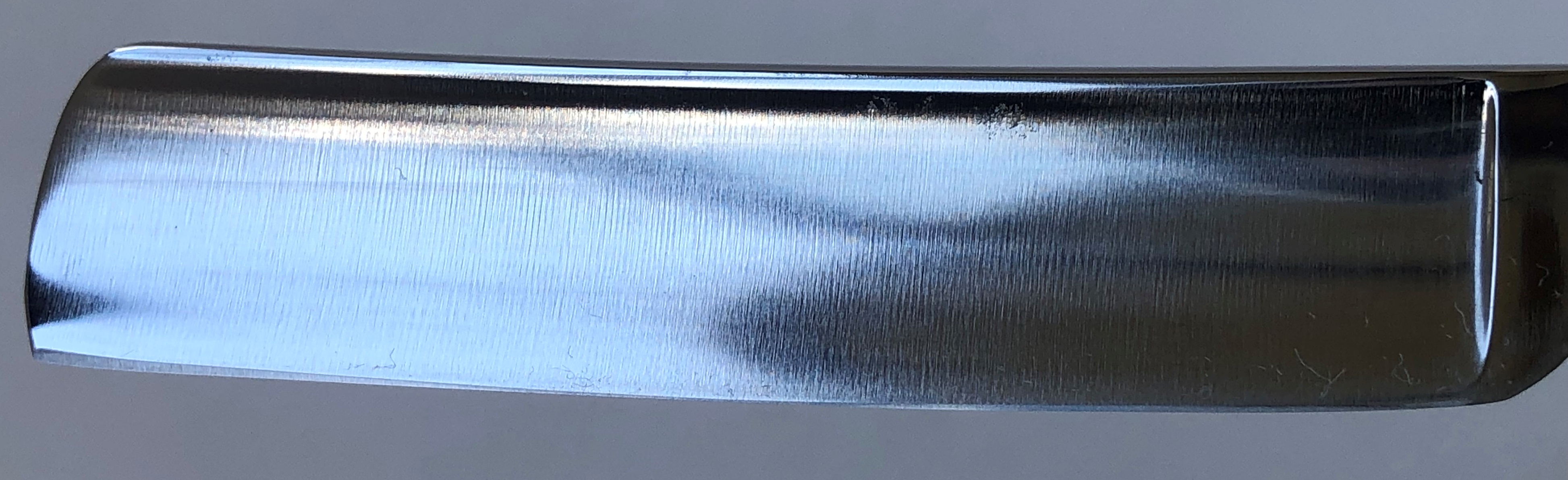 Бритва малопользованная изначально, но имеется небольшая разность в толщине обушка, что привело в неравномерной утОчке полотна.Сама по себе кромка равномерна по всей длине, но наличие небольшой "волны" присутствует, что естественно скажется на конечной стоимости бритвы,без потери качества стали и комфортна бритья. Бритва была разобрана для минимальных косметических работ и заново собрана, с добавлением внутренних шайб.Умеренная шлифовка и полировка.Сталь чистая,без видимых дефектов.Бритва заточена и готова к бритью. Для тех, кому не важна коллекционная стоимость , а именно профессиональные качества предмета стоят на первом месте.Не пропустите именитого японца за совсем бюджетные средства.