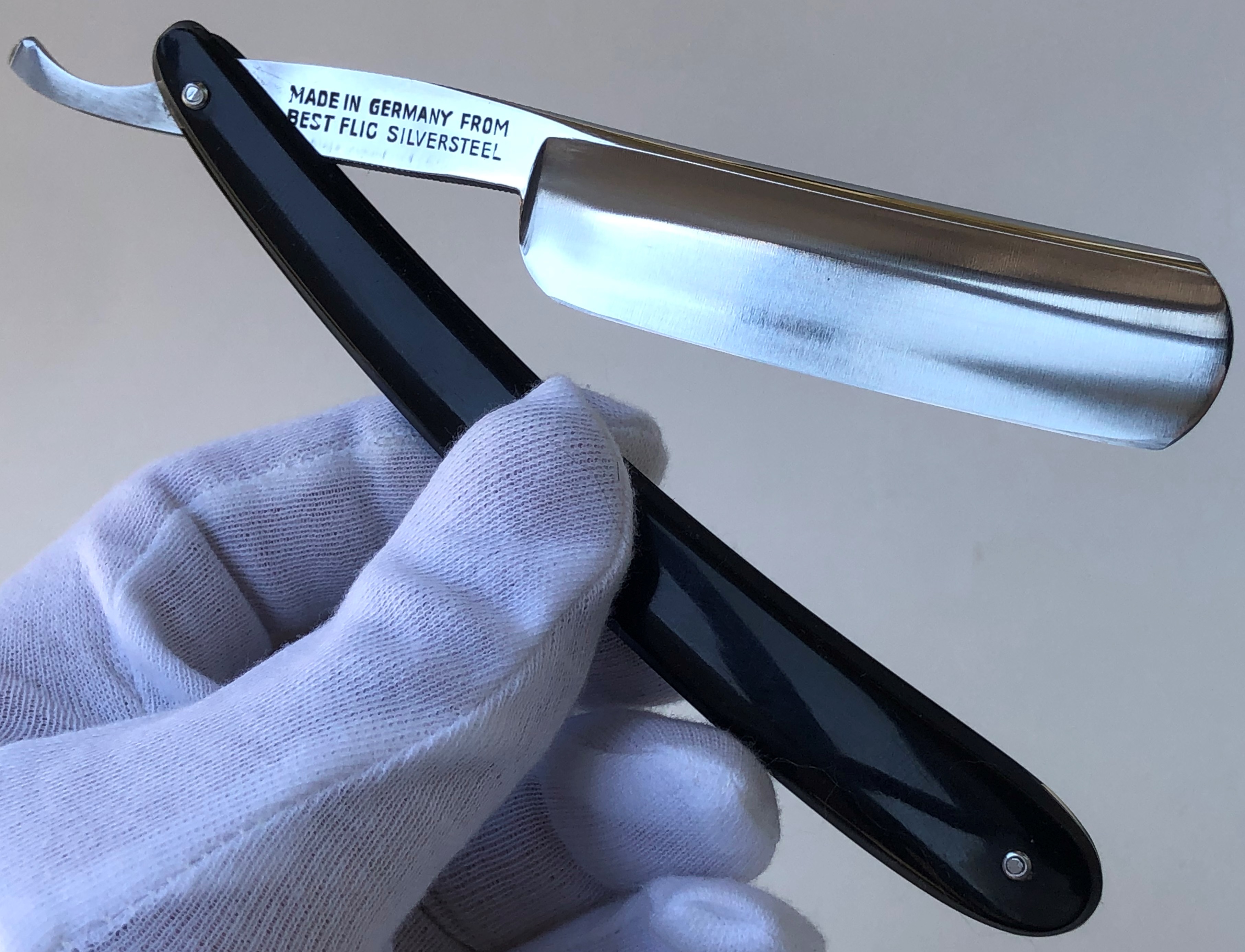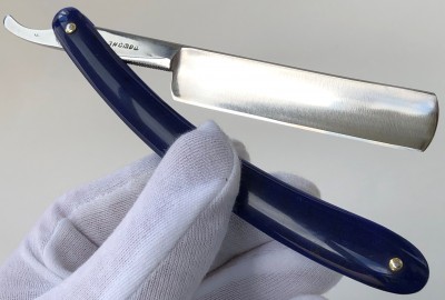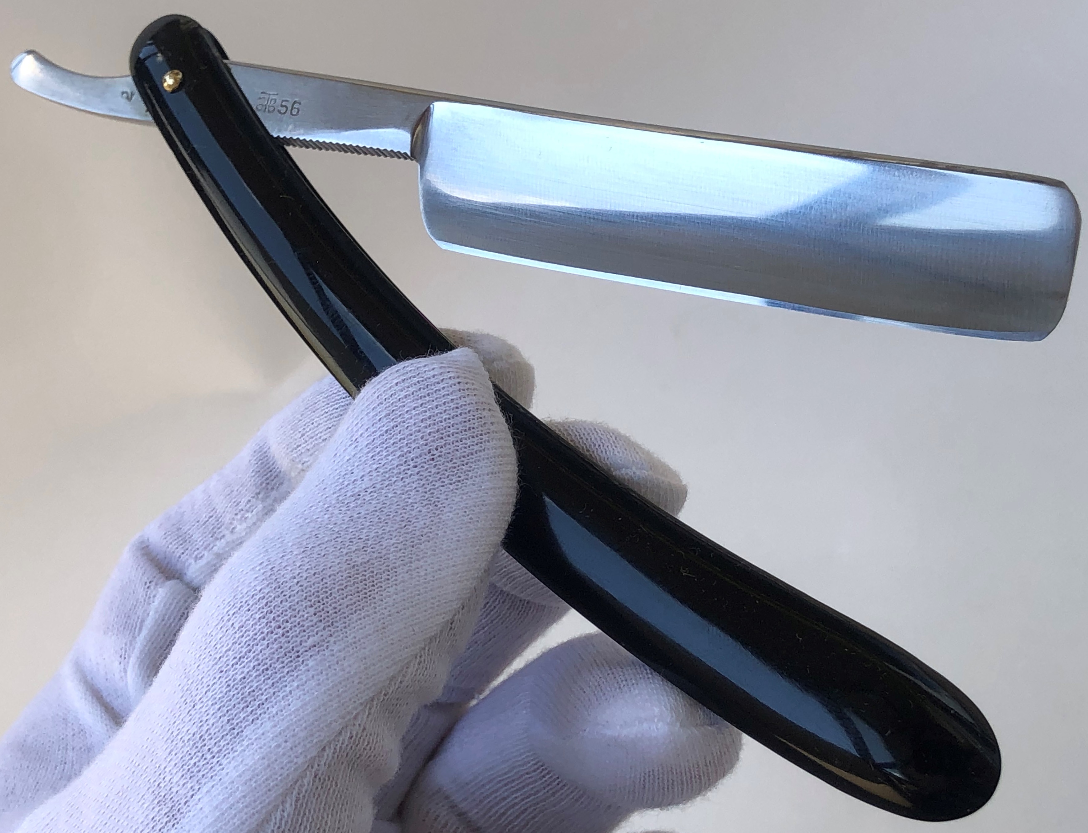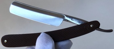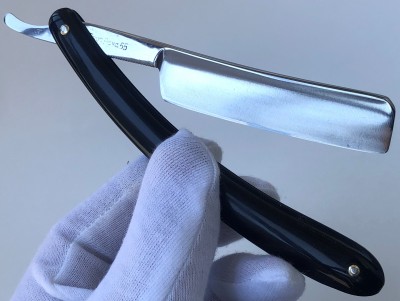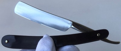 Сам клинок восстанавливался до меня.Со своей стороны я только немного освежил металл, поменял оправу от английского донора примерно такого же возраста, а также установил старинные стальные пины. Умеренная полировка. Бритва тяжёлая,мощная. Парикмахерский носик. Бритва не такая широкая и неповоротливая, как другие модели этого бренда. , так что бриться более сподручнее. Отличная, комфортная и не такая твердая сталь. Заточена и готова к бритью.