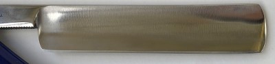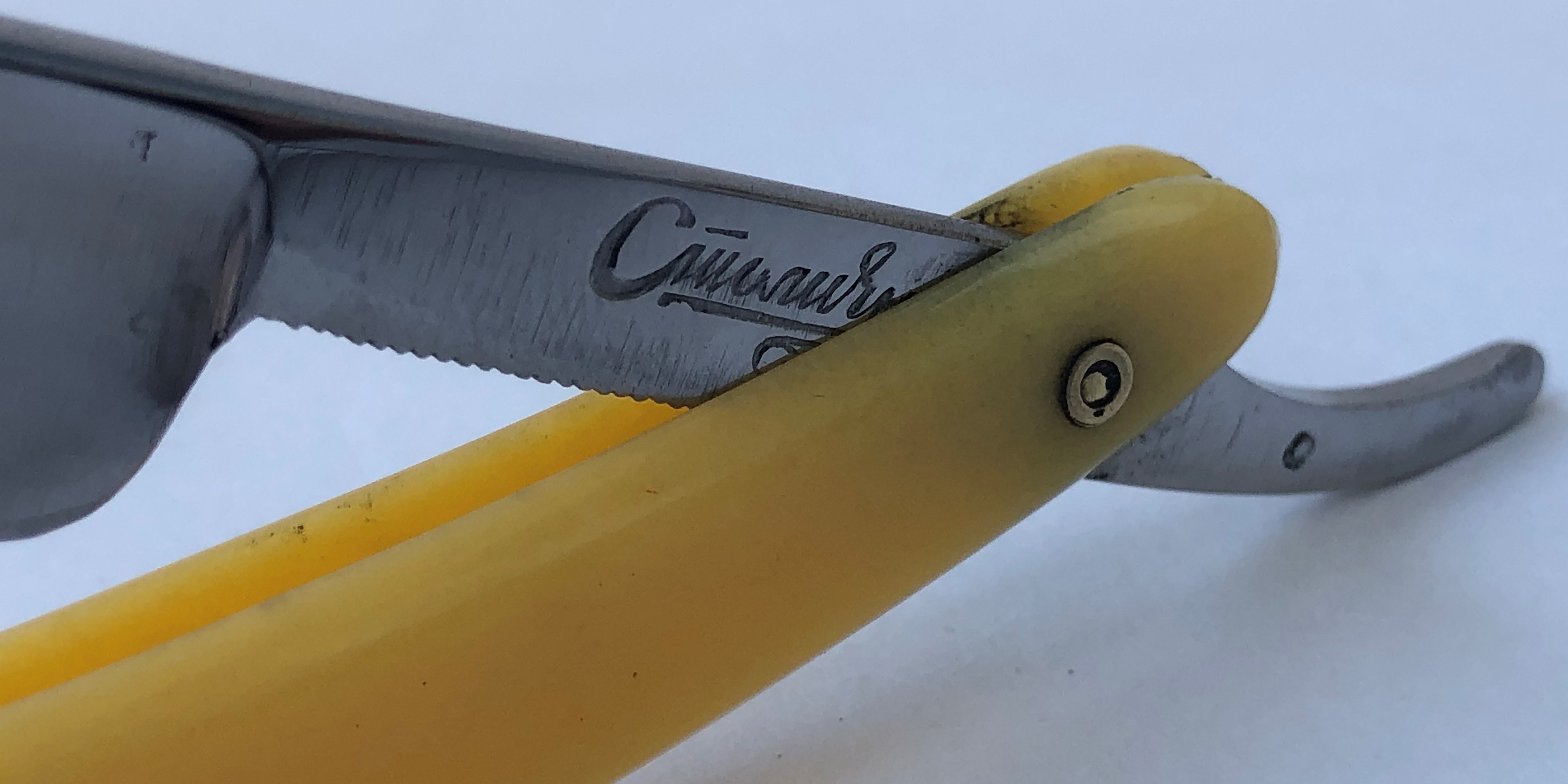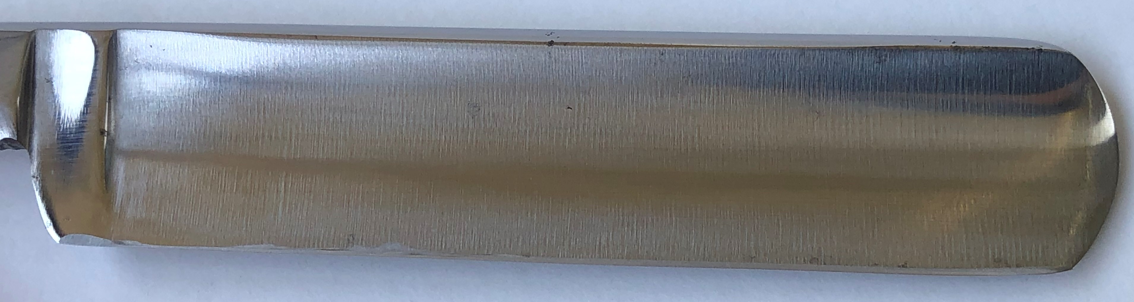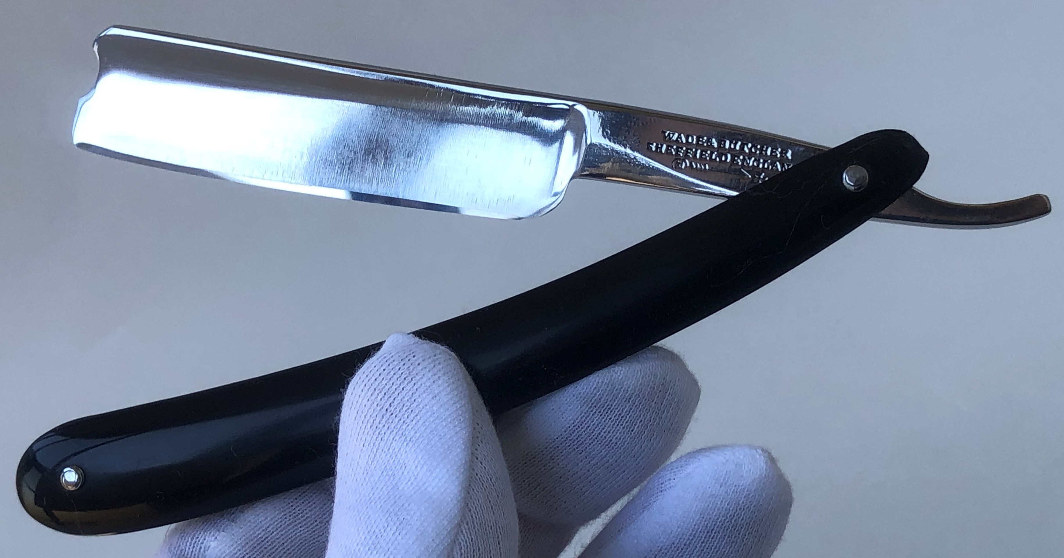 Сам клинок восстанавливался до меня.Со своей стороны я только немного освежил металл, поменял оправу от английского донора примерно такого же возраста, а также установил старинные стальные пины. Умеренная полировка. Бритва тяжёлая,мощная. Парикмахерский носик. Бритва не такая широкая и неповоротливая, как другие модели этого бренда. , так что бриться более сподручнее. Отличная, комфортная и не такая твердая сталь. Заточена и готова к бритью.