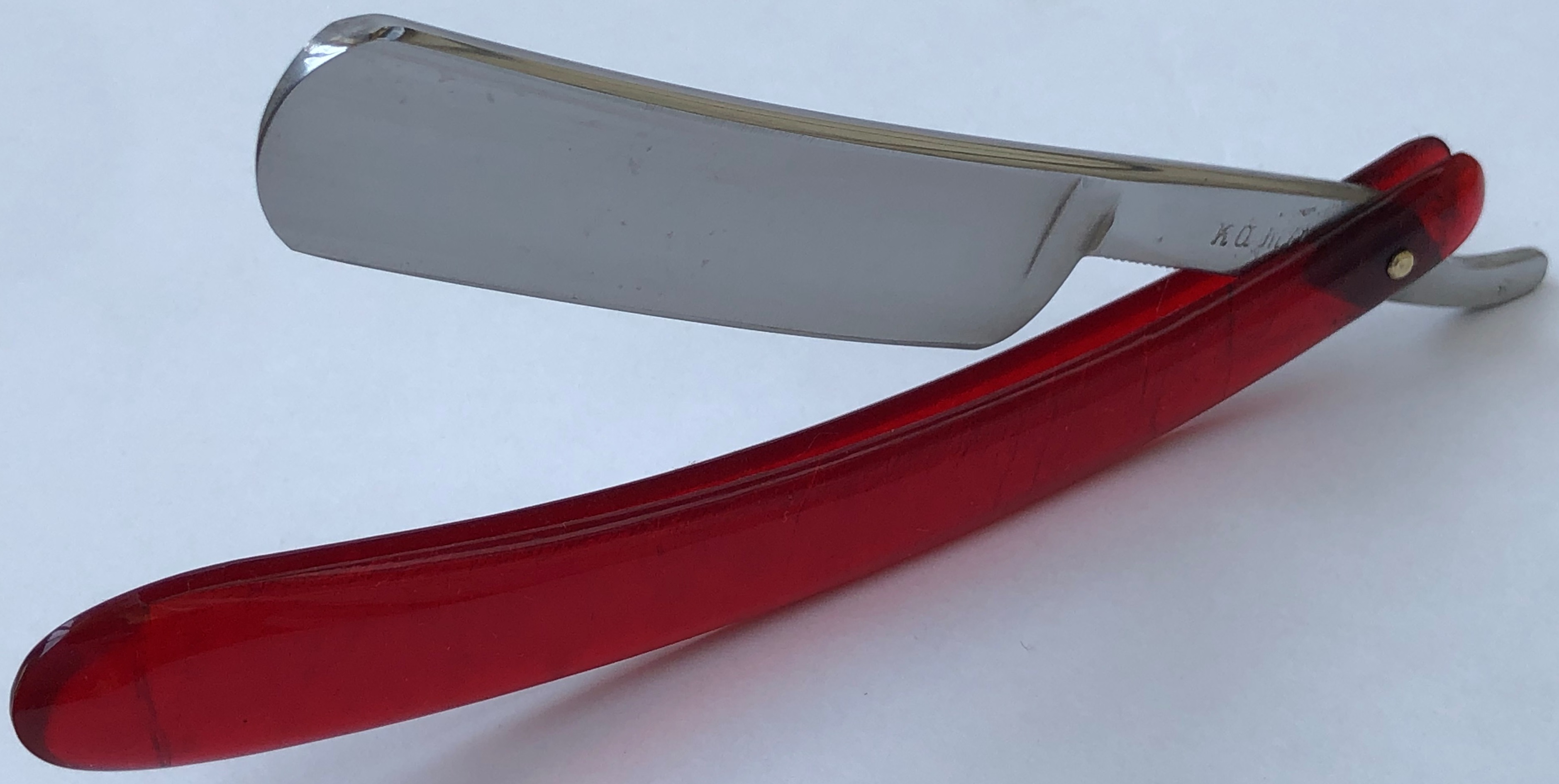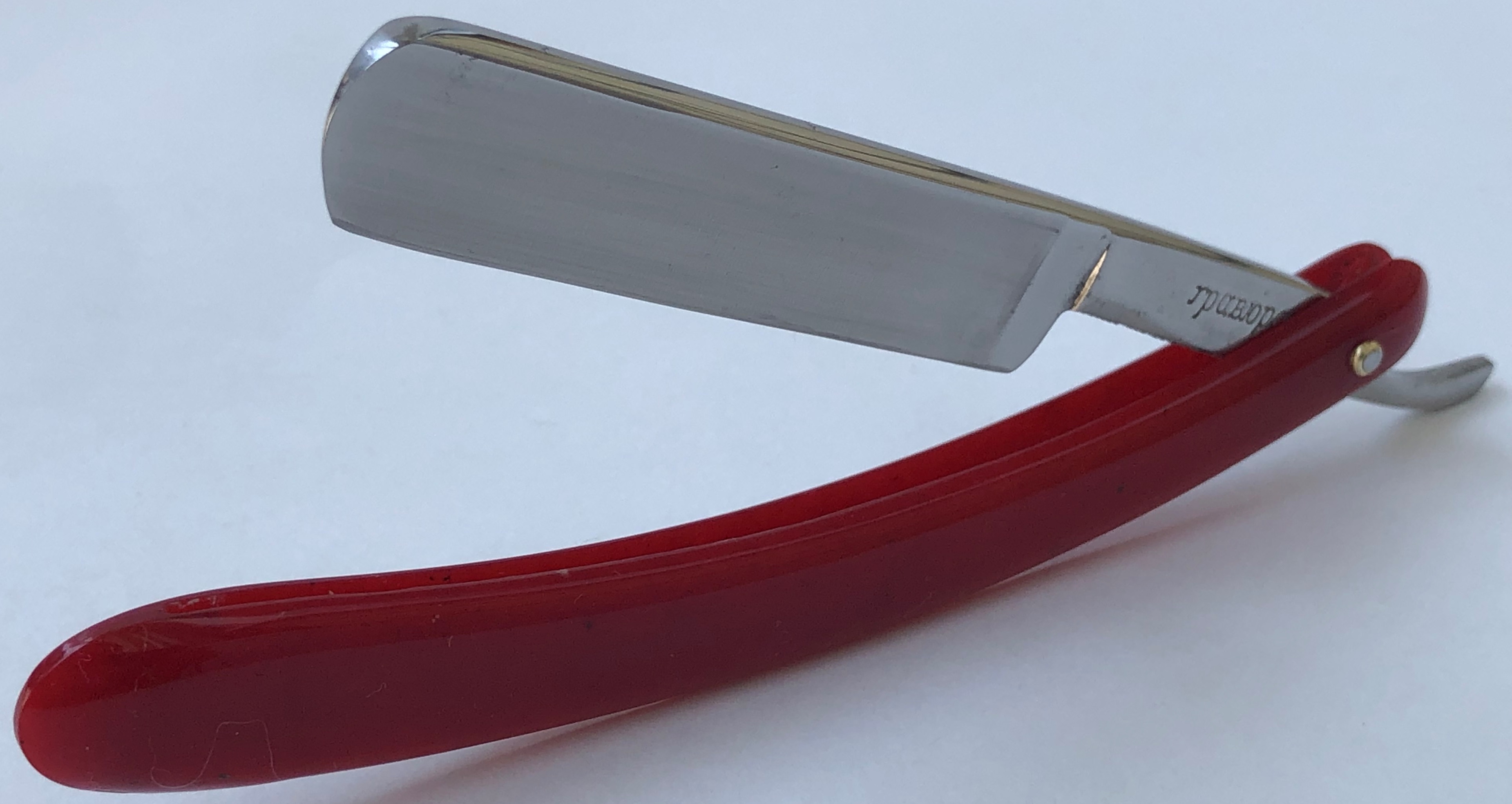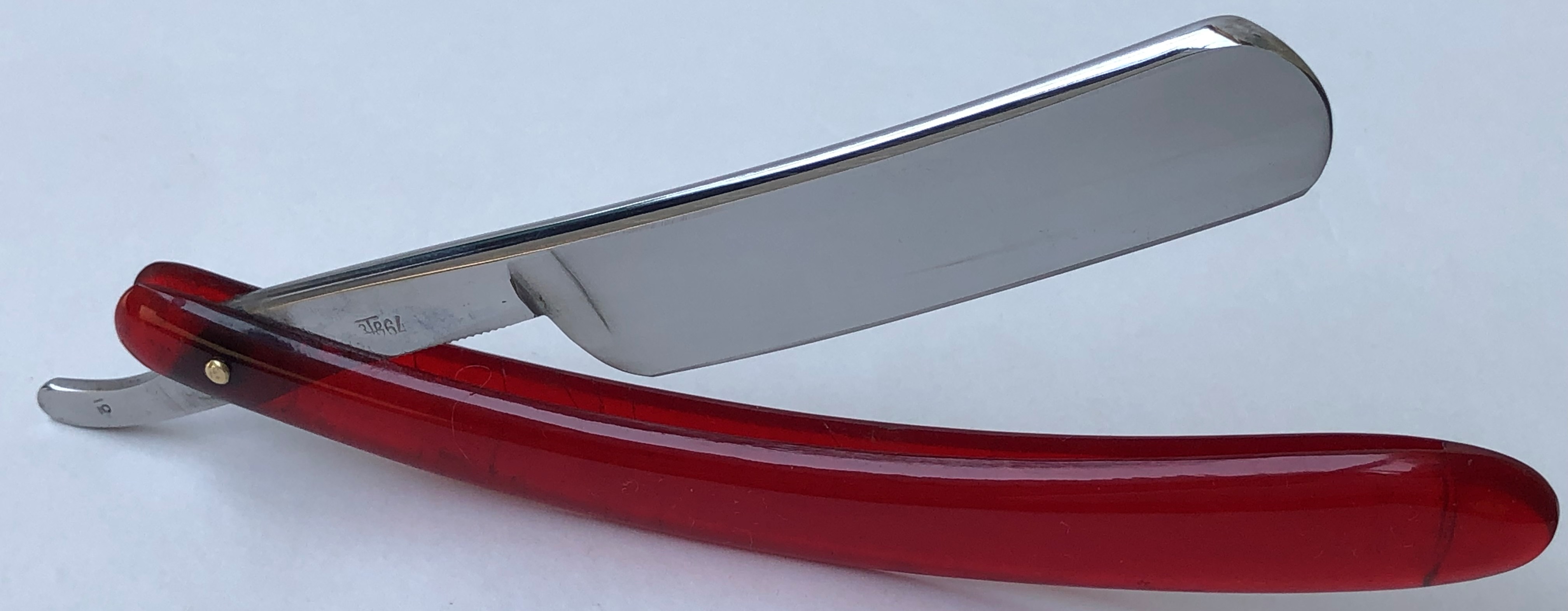 Бритва с хранения. Только оттер от остатков масла и умеренно отполировал клинок.Ничего не реставрировалось и не разбиралось.Остатки следов от электро-химической заточки присутствуют. Идеальная геометрия полотна:кромочка равномерна по всей длине. Эффектна ярко-красная оправа. Коробочка от "ЭКСТРЫ".Бритва заточена и готова к бритью. Отличный и недорогой вариант для новичка.