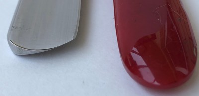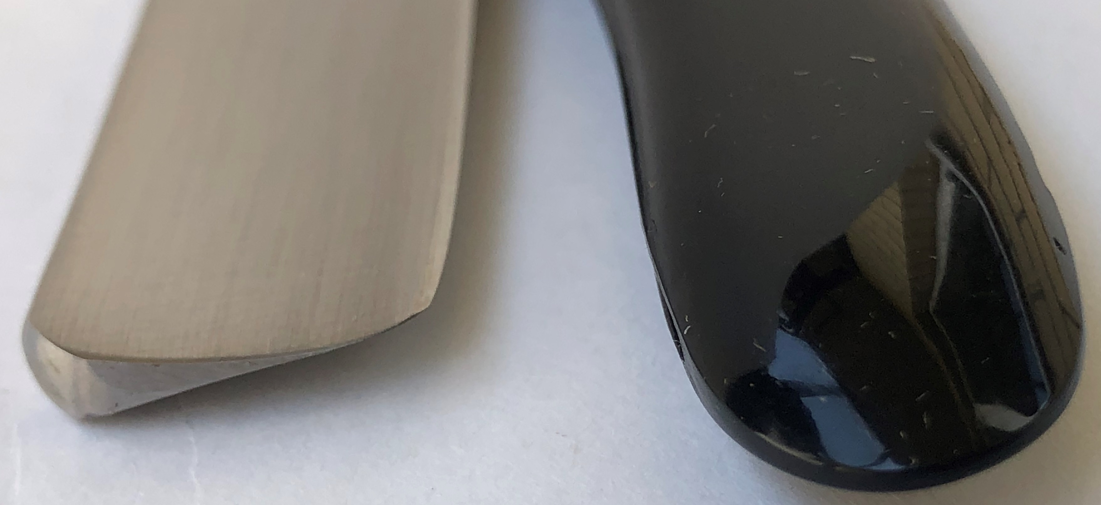 Бритву переточил под себя и протестировал. Бритье выше всяких похвал,хотя немного непривычно пользоваться бритвой в таком размере.Но все это дело наживное.Также, камисори не прощает ошибок, так что по первой порезы обеспечены..  Мастер отлично попал в плане удачной закалки, а именно мягкая режущая часть дает комфортное и чистое бритье,чем то напоминающее бритье старинной англичанкой. После бритья тест на рез волоса(без правки на ремне)такой же мягкий, как и до бритья, что говорит о том, что РК хорошо держит заточку.