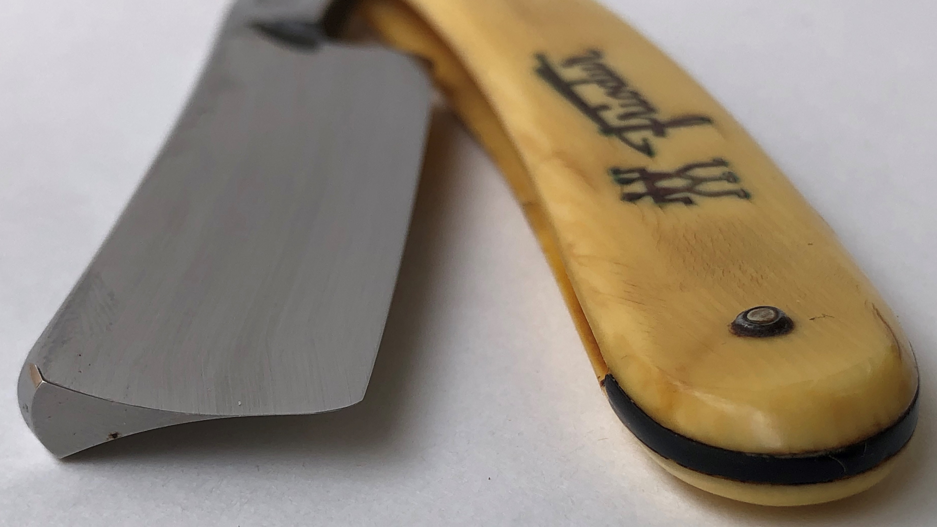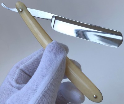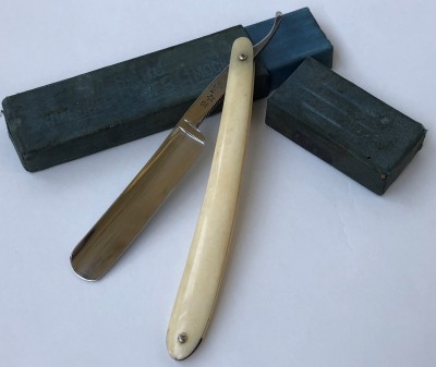 Бритва находится в хорошем и малопользованном состоянии. Оригинальная шлифовка и полировка полотна! Клинку была дана шикарная оправа из натуральной кости от другой советской довоенной бритвы(инструмент).Из за особенности геометрии полотна кромка имеет небольшую "волну",которая ни на что не влияет.Также в наличии редкая оригинальная коробочка! Перед отправкой бритва будет заточена.
