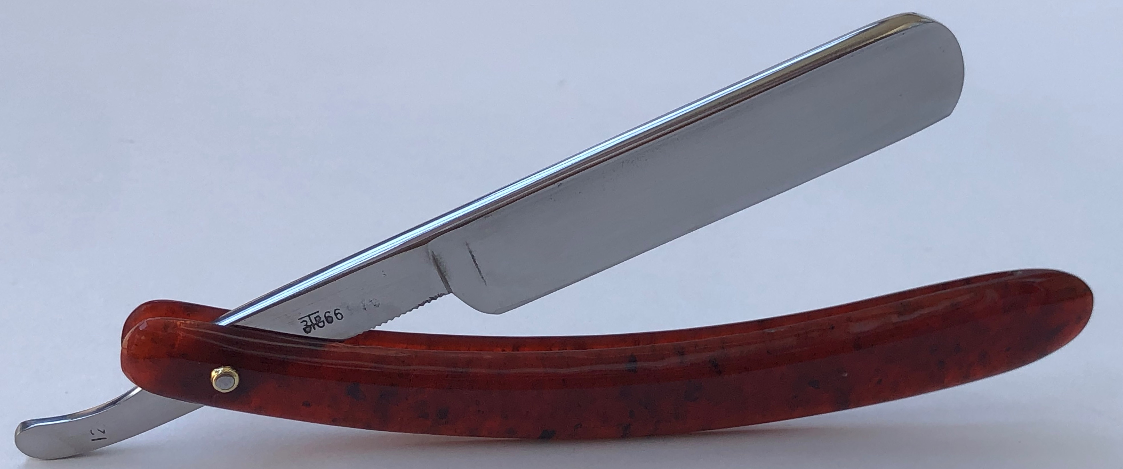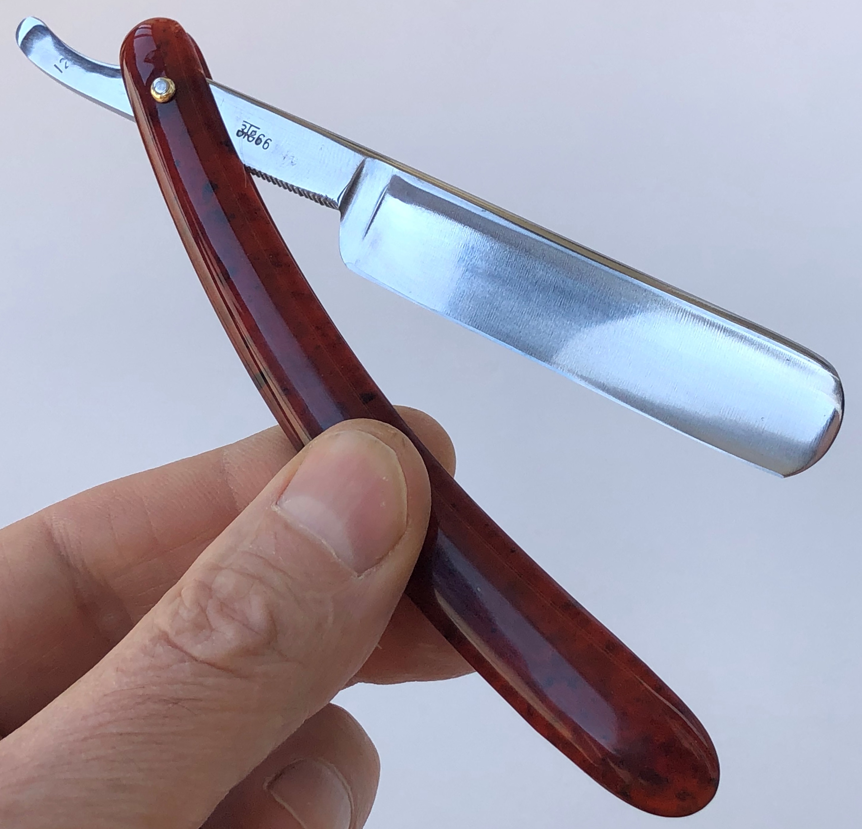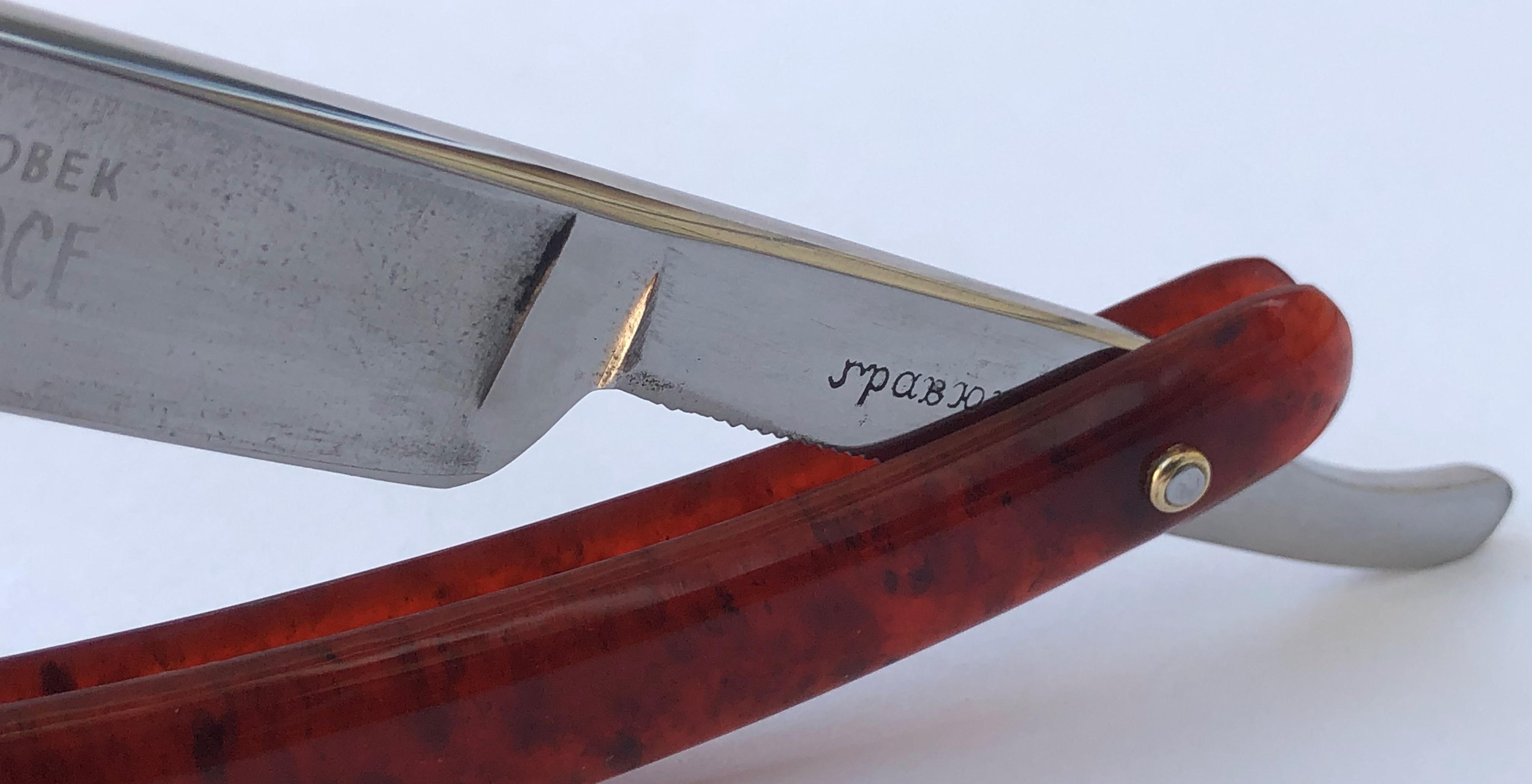 Ширина полотна-21.5 мм. Толщина обушка-5.9 мм. Полная вогнутость. Высококачественная углеродистая сталь. Середина прошлого века производство. Бритва в очень хорошем состоянии,без следов пользования.Не разбиралась! Немного освежи на самых тонких абразивах полотно,чтобы удалить микроцарапинки и придать металлу былой блеск. Умеренная полировка.Гравировка чёткая,без потертостей.Удобные пластиковые накладки дают возможность не так пристально следить за текущим уходом бритвы после бритья и не получить налёт ржавчины в районе осевого пина и эрля.Идеальная геометрия полотна:кромочка равномерна по всей длине и еле заметна. "Звонкая и поящая" сталь также способна выдавать качественный финиш при тонкой доводке на камнях,а также комфортное и чистое бритьё. Бритва подойдёт как новичку,в качестве стартовой,но также любому пользователю. Цена-15500 р с доставкой. Внимание! Важная информация! Spoiler Show