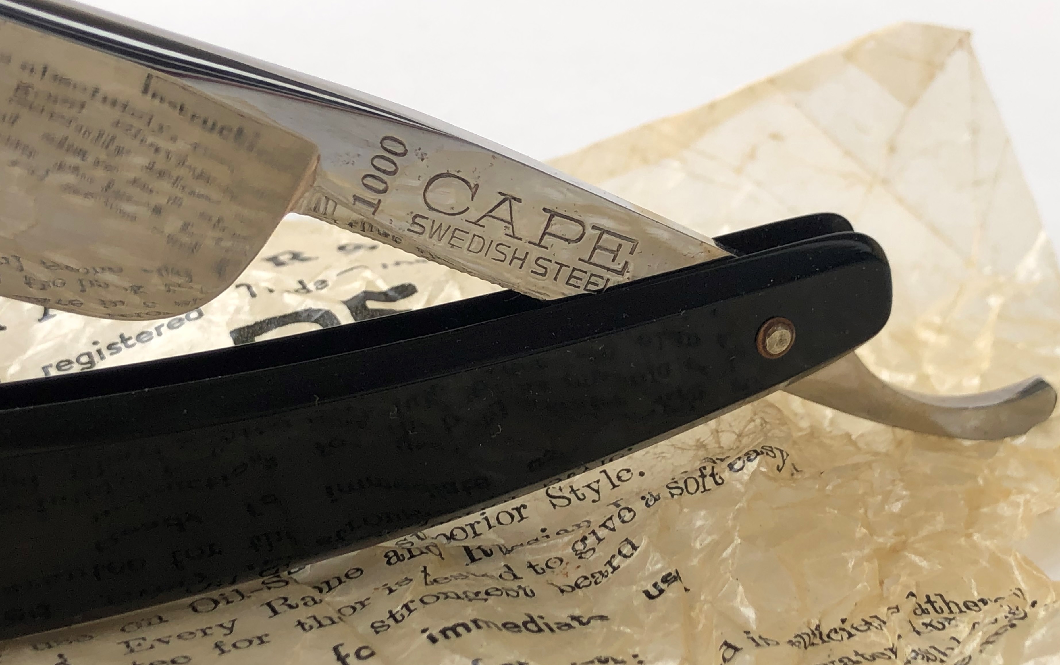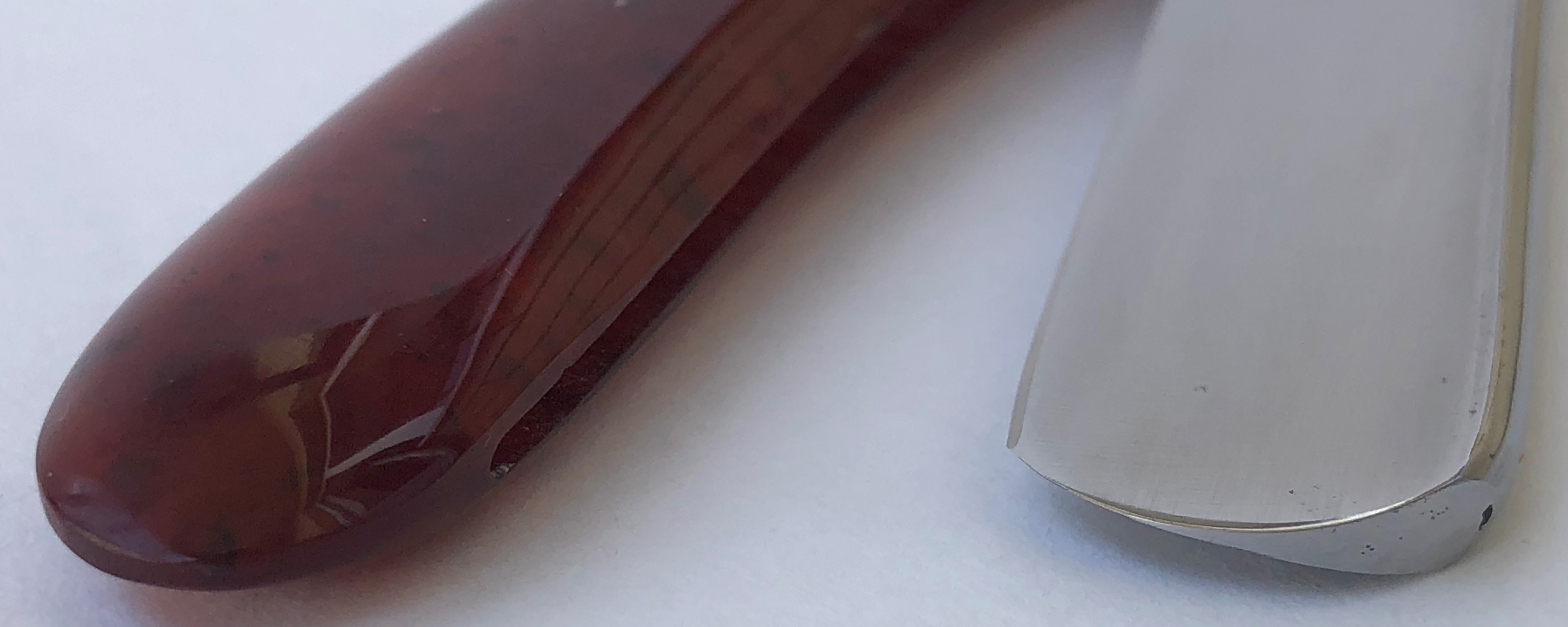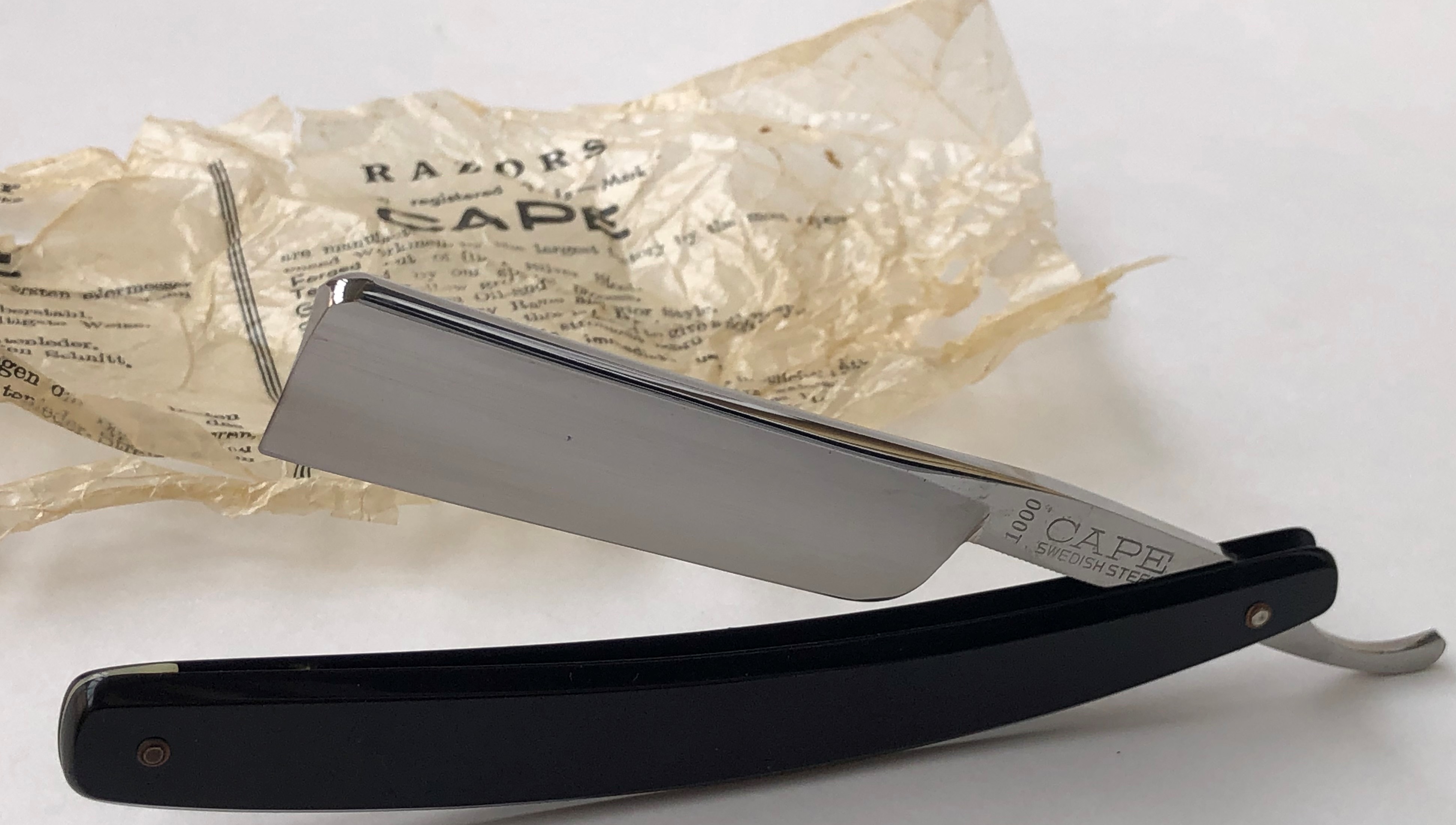 Ширина полотна-21.5 мм. Толщина обушка-5.9 мм. Полная вогнутость. Высококачественная углеродистая сталь. Середина прошлого века производство. Бритва в очень хорошем состоянии,без следов пользования.Не разбиралась! Немного освежи на самых тонких абразивах полотно,чтобы удалить микроцарапинки и придать металлу былой блеск. Умеренная полировка.Гравировка чёткая,без потертостей.Удобные пластиковые накладки дают возможность не так пристально следить за текущим уходом бритвы после бритья и не получить налёт ржавчины в районе осевого пина и эрля.Идеальная геометрия полотна:кромочка равномерна по всей длине и еле заметна. "Звонкая и поящая" сталь также способна выдавать качественный финиш при тонкой доводке на камнях,а также комфортное и чистое бритьё. Бритва подойдёт как новичку,в качестве стартовой,но также любому пользователю. Цена-15500 р с доставкой. Внимание! Важная информация! Spoiler Show