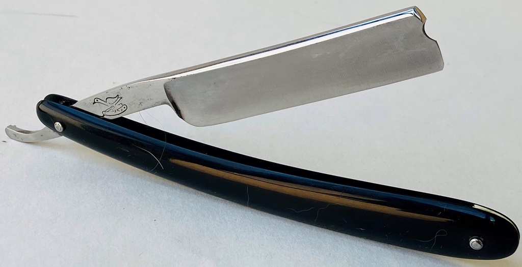 Ширина полотна-17.5 мм. Толщина обушка-4.5 мм. Форма лезвия ближе к полу-клину. Углеродистая сталь. Информации по производителю не нашел,но по косвенным признакам, а также исходя из своего опыта,могу сказать,что бритва начала 20-го века.Возможно была сделана на рубеже 19 и 20-х веков. Бритва в прекрасном состоянии и без видимых следов пользования. Скорее в пользовании не была,хотя за столько времени могло быть всё.. Бритву разобрал,немного освежил металл и заново собрал, с сохранением внутренних шайб и оригинальных пинов.Идеальная геометрия полотна:кромочка равномерна по всей длине и еле заметна.Барберский носик. Бритва заточена и готова к бритью.Была лично протестирована.Могу сказать, что в бритье тут классическая немка:своенравная,дерзкая, не прощающая ошибок. Но в тоже время всегда выполнена на самом высоком уровне,как все немецкое.. В итоге,чистое и комфортное бритье,с неким "металлическим" характером сбриваемой щетины. Можно где то сравнить с советскими Вачами и Росинструментами военного периода. Короче, отличная и недорогая старинная вещь. Не пропустите. Цена-9500 р с доставкой. Внимание! Важная информация! Spoiler Show