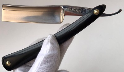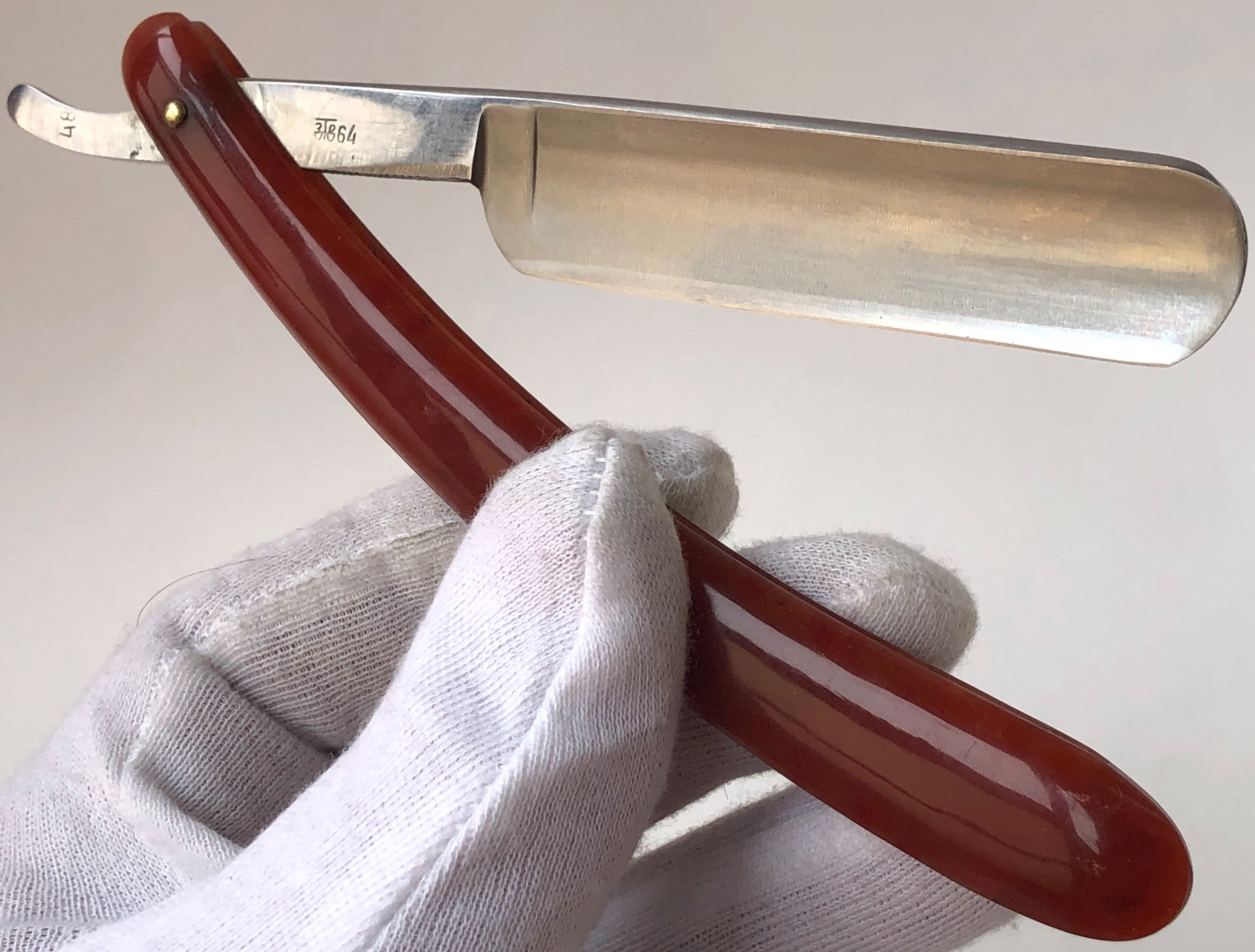 За 100+ лет бритва прекрасно сохранилась и без видимых следов пользования.Никакого регринда, а только умеренная и минимальная шлифовка и полировка.Идеальная геометрия полотна:кромочка равномерна по всей длине.Добавил внутренние шайбы, а также поставил более эффективные двух-цветные втулки. Красивая пластиковая оправа. Бритва среднего размера и опытный пользователь в состоянии оценить ее в полной мере.Ну и для новичка будет тоже неплоха,как качественная,удобная и относительно недорогая вещь.Не пропустите реально красивую,высококачественную,старинную бритву от одного из самых лучших немецких производителей прошлого.
