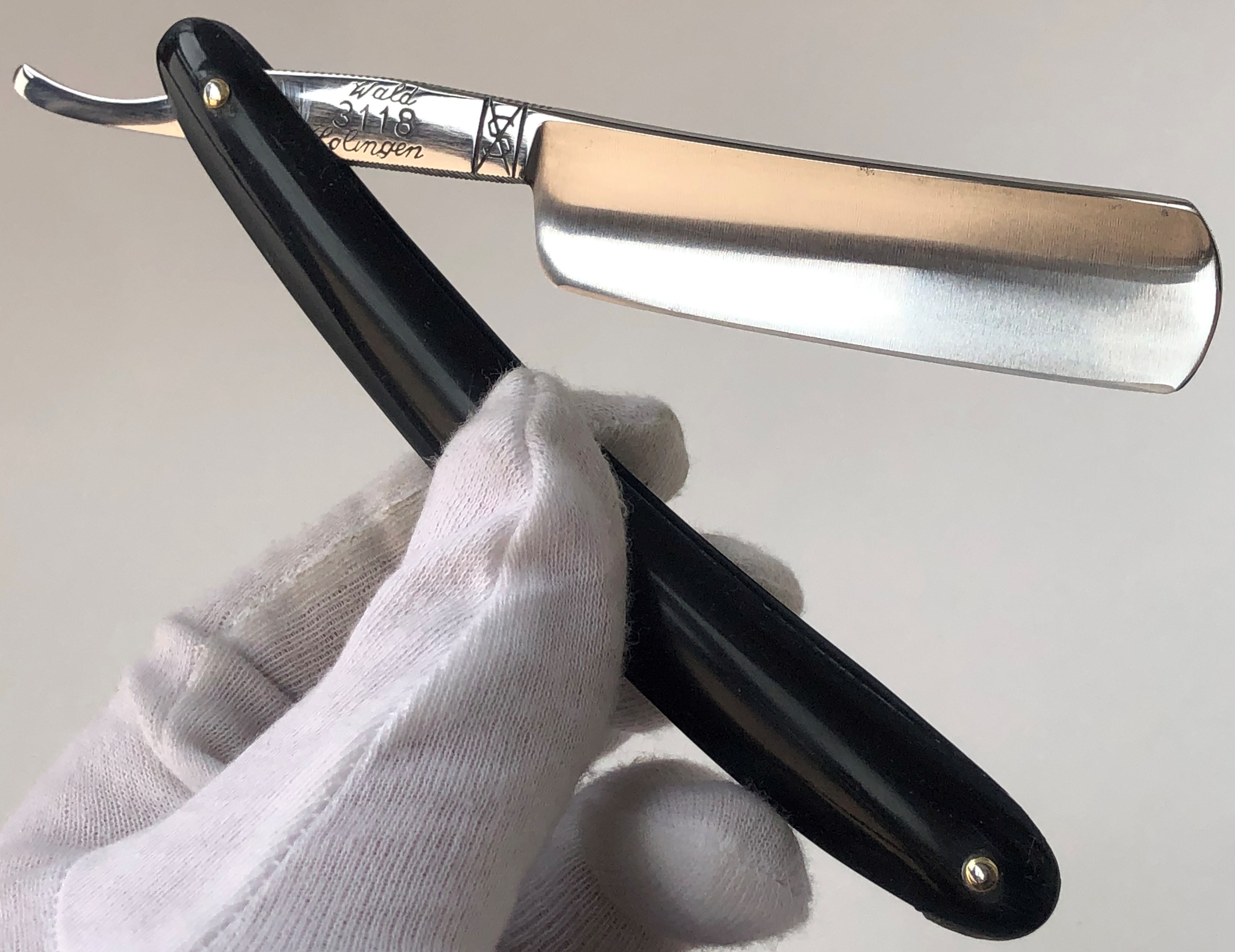 Бритва в идеальном состоянии,без активных следов пользования.Не разбиралась и не ремонтировалась.Все полностью в оригинале.Заводская шлифовка и полировка.Кромочка равномерна по всей длине.Чёткое травление, без потертостей.